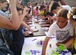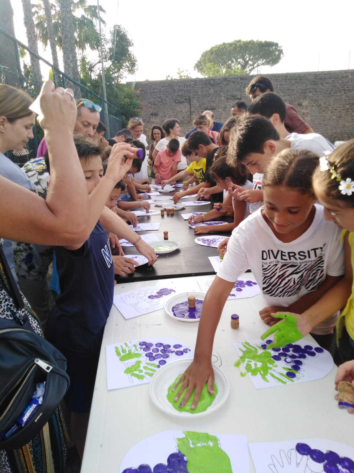 Alle 17.30, al Conservatorio dei Sette Dolori, c’è stato il secondo appuntamento della giornata: il ritiro per ragazzi e genitori. L’incontro è cominciato con il canto che ha accompagnato i bimbi durante tutto l’anno catechistico: “Il più grande motore del mondo”. “La vite e i suoi tralci” sono stati il tema del ritiro. A tal riguardo il nostro parroco, don Francesco Saverio Iaccarino, ha letto un brano tratto dal Vangelo. Dopo una breve meditazione, sono cominciati i giochi e le attività che hanno avuto come protagonisti bambini e genitori. La prima attività, di tipo creativo, prevedeva la colorazione di una pigna d’uva stampata su di un foglio, con l’ausilio di tappi di sughero e l’impronta delle mani. A seguito di ciò, i ragazzi hanno potuto appendere i grappoli ai tralci preparati dalle catechiste.