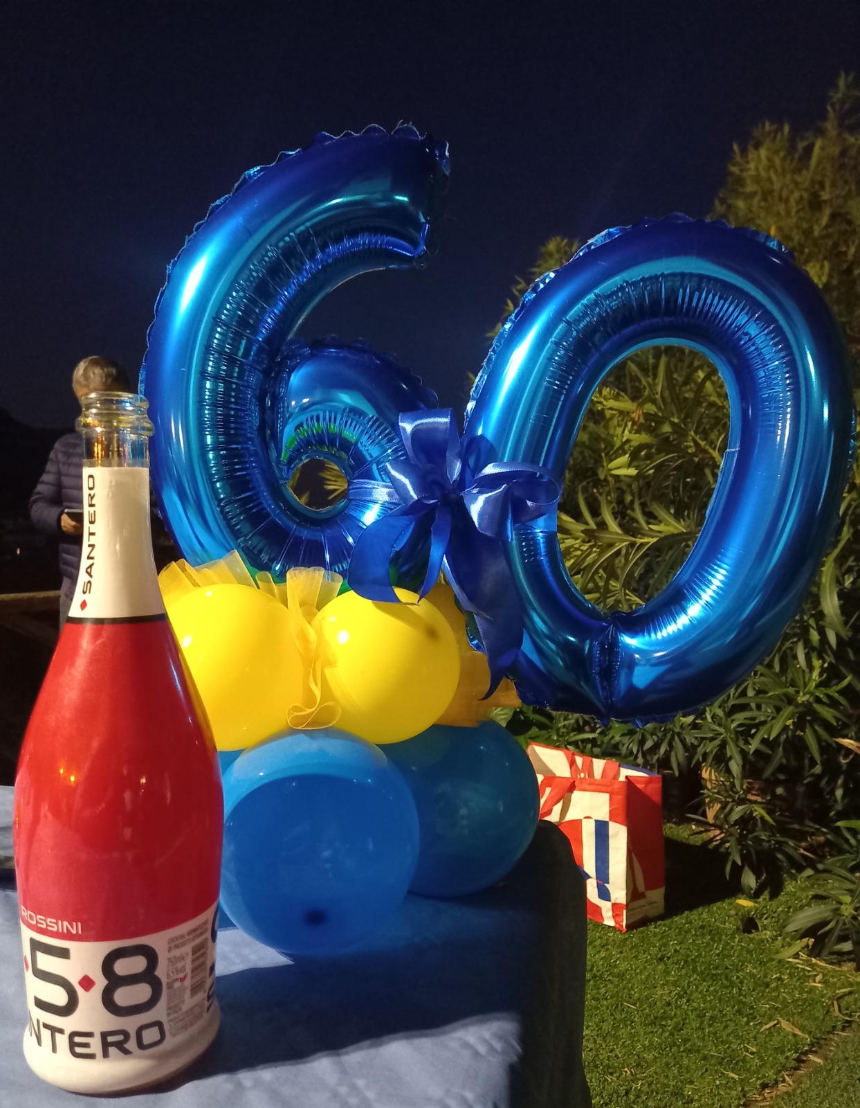 Poi, a don Tonino è stato demandato il compito di stappare le bottiglie di un frizzante cocktail, davanti a un tavolo imbandito con bevande analcoliche e stuzzichini per aperitivo e abbellito dal numero sessanta, composto di palloncini color blu elettrico, che svolazzavano in un lato, apportando un’ulteriore nota di originalità e di allegria.