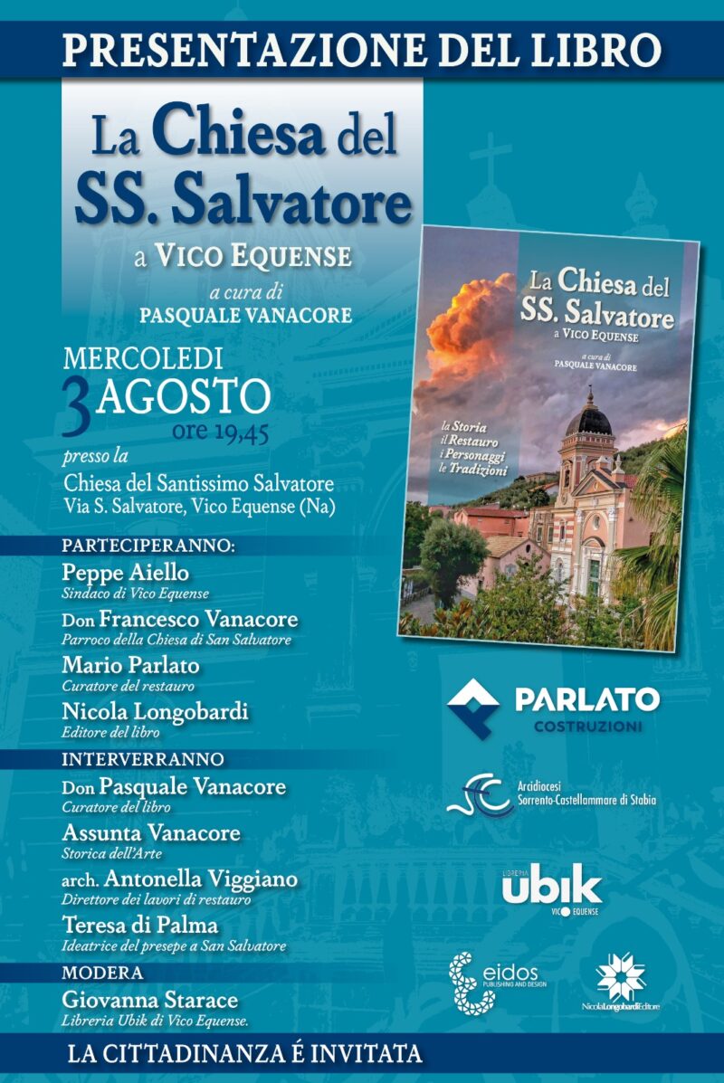 Mercoledì prossimo, alle ore 19.45, verrà presentato alla comunità di San Salvatore e a tutti i cittadini di Vico Equense e dei suoi dintorni, il libro che documenta le vicende storiche del manufatto architettonico, di recente oggetto di un accurato intervento di recupero, attraverso le visite pastorali, la descrizione degli arredi e la vita dei personaggi illustri.