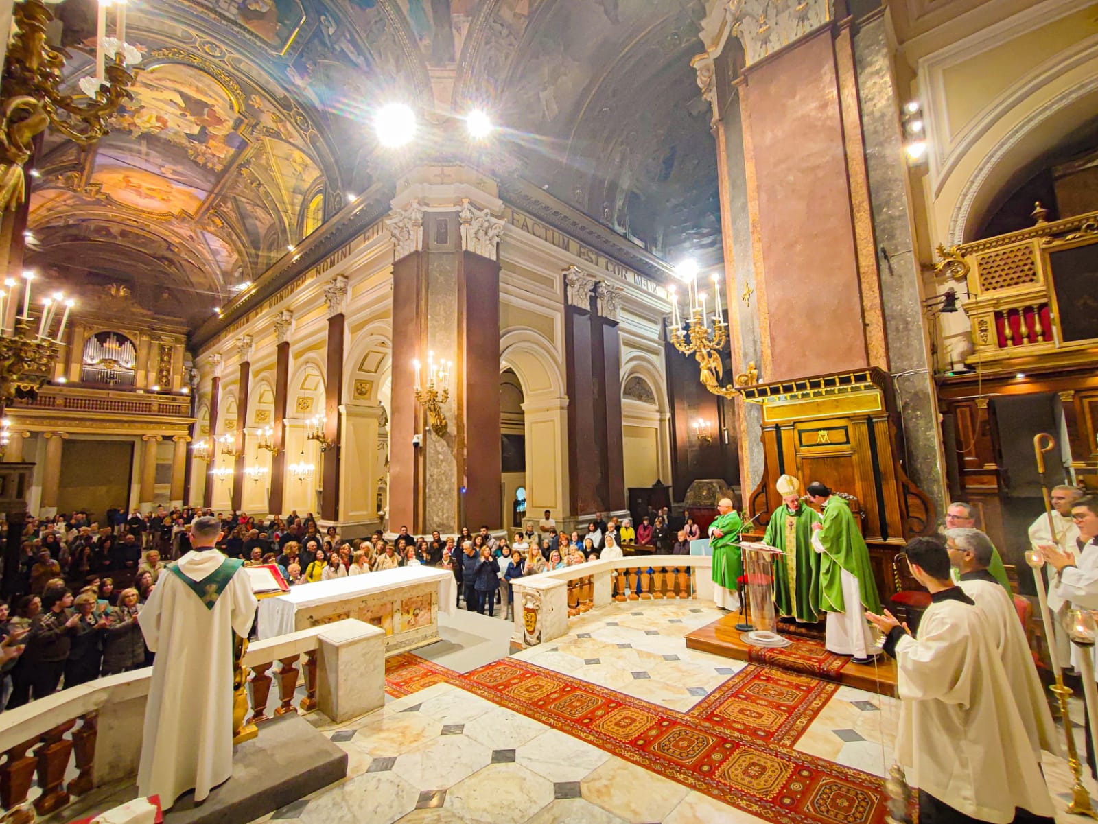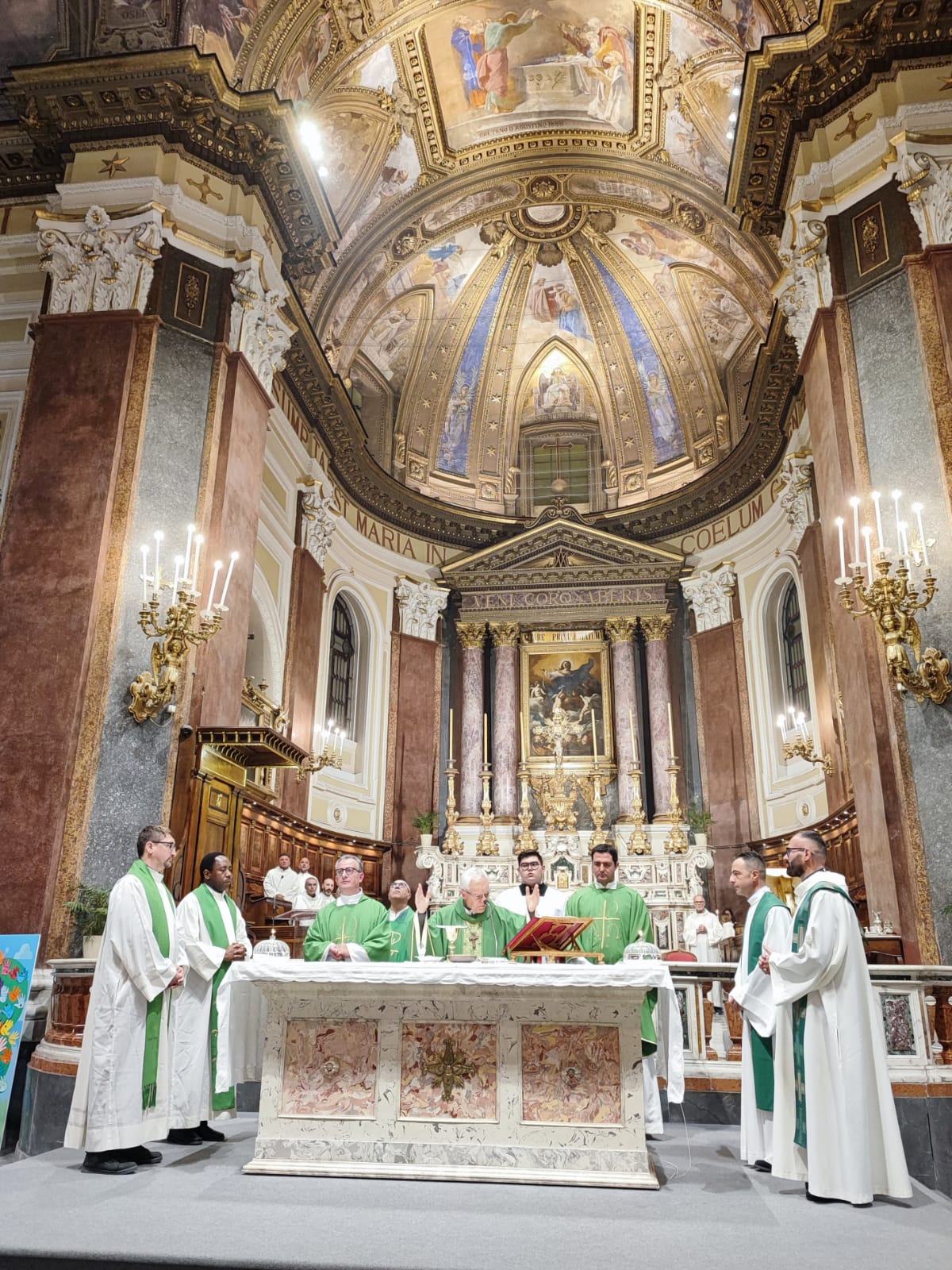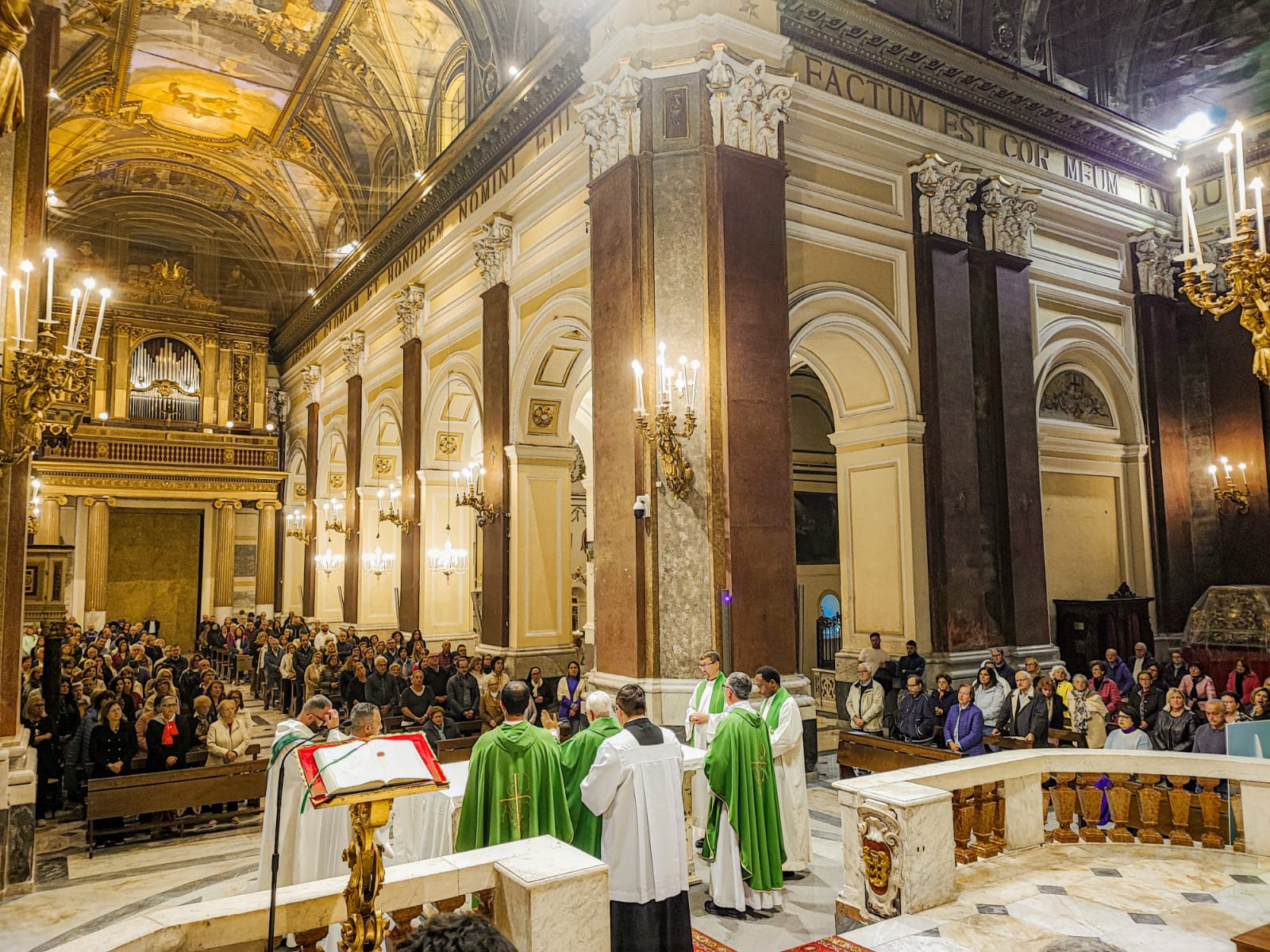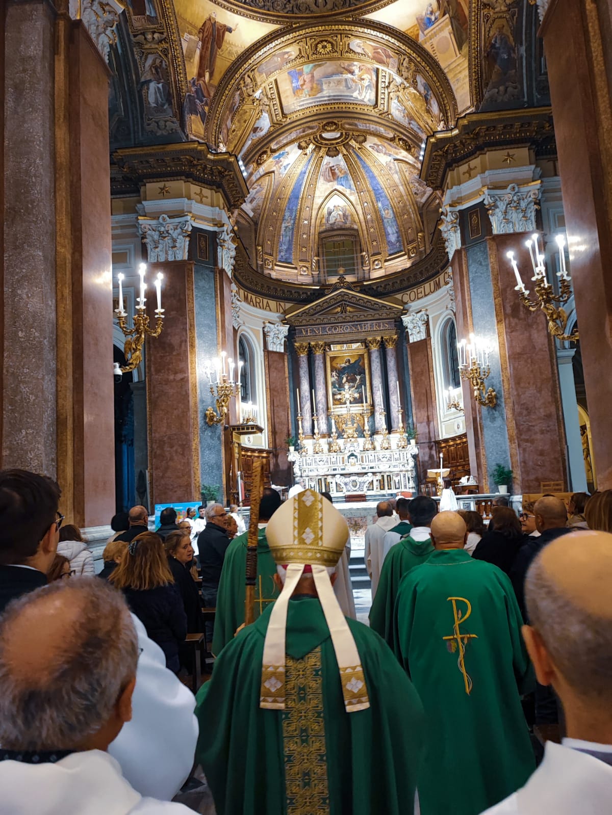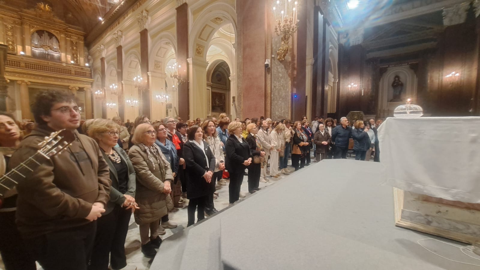 Dopo la fine dei laboratori ,tutti insieme abbiamo partecipato alla Santa Messa celebrata da S.E.Mons.Francesco Alfano che alla fine di essa ci ha chiesto di presentarci presso l’altare Maggiore per darci la Benedizione e inviarci a mettere in realtà i carismi che lo Spirito ci ha donato.