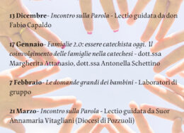 Avremo un incontro al mese, itineranti, sulla catechesi, sulla Parola, sul coinvolgimento delle famiglie che riteniamo essenziale nel processo di educazione alla fede dei più piccoli, sulle ‘domande grandi dei bambini’, perché i bambini pongono domande, ne hanno il coraggio, ed esigono risposte, e, a volte, quelle domande, restano senza risposte anche dentro di noi.