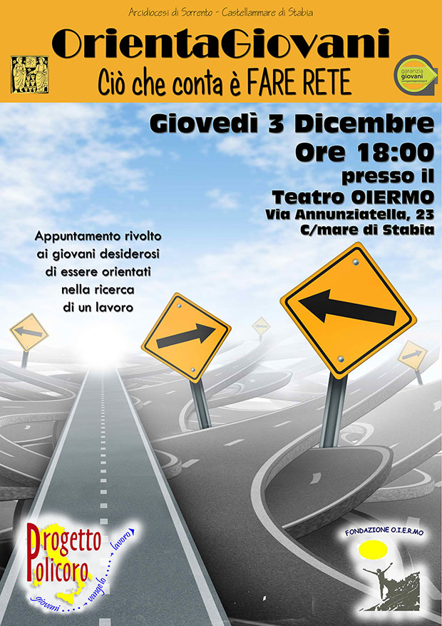 Lincontro dal titolo OrientaGiovani Ciò che conta è fare rete si svolgerà giovedì 3 Dicembre 2015 alle ore 18:00 presso il Teatro Oiermo in Via Annunziatella, 23 Castellammare di Stabia (Na).
