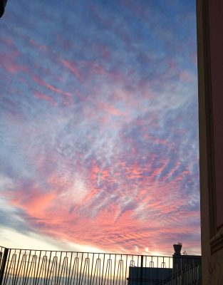 Se poi, come ieri sera, terra, cielo, mare, sole e nuvole si divertono un po’ inventandosi sfumature incredibili, la preghiera comincia già molti gradini più su del solito.