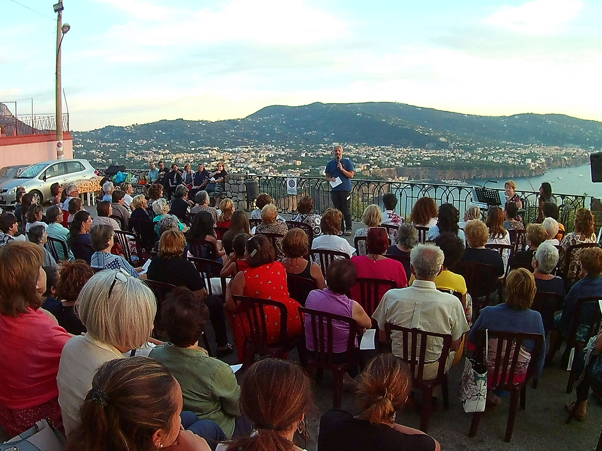 Una dolce musica di organo e violino, che pure hanno segnato le tappe di questa serata, ci riporta coi piedi per terra, speriamo “alzati”. Il sole ci ha lasciato più di un’ora fa, ma è bello stare qui a salutare, a parlare, a godersi il panorama con le luci della penisola. A darci appuntamento a giovedì, ai prossimi panorami… dell’anima.