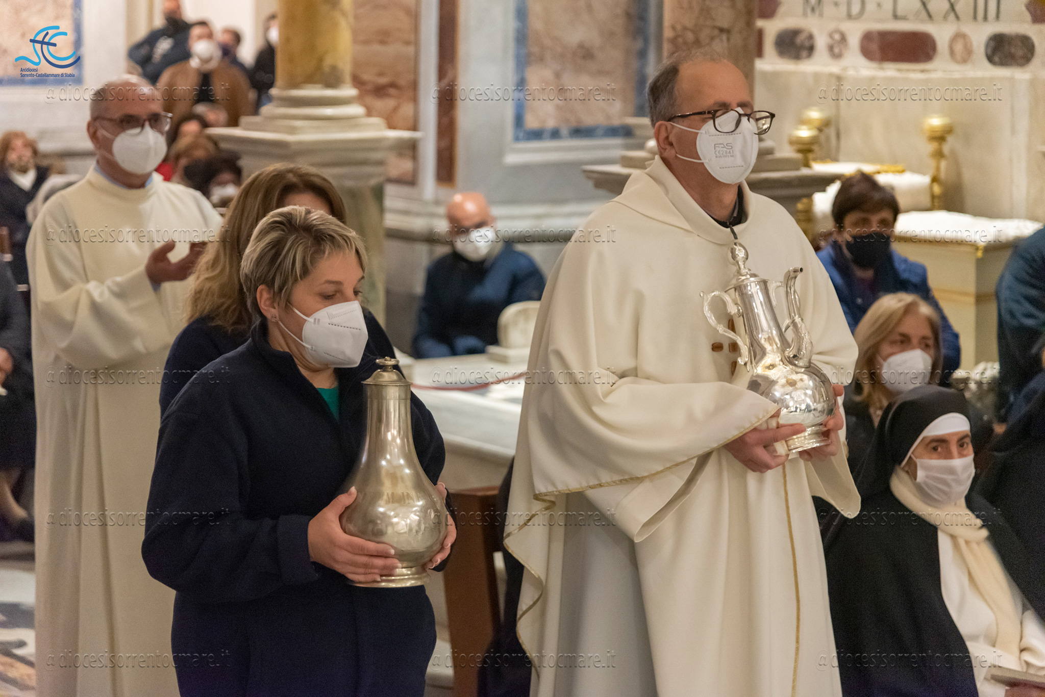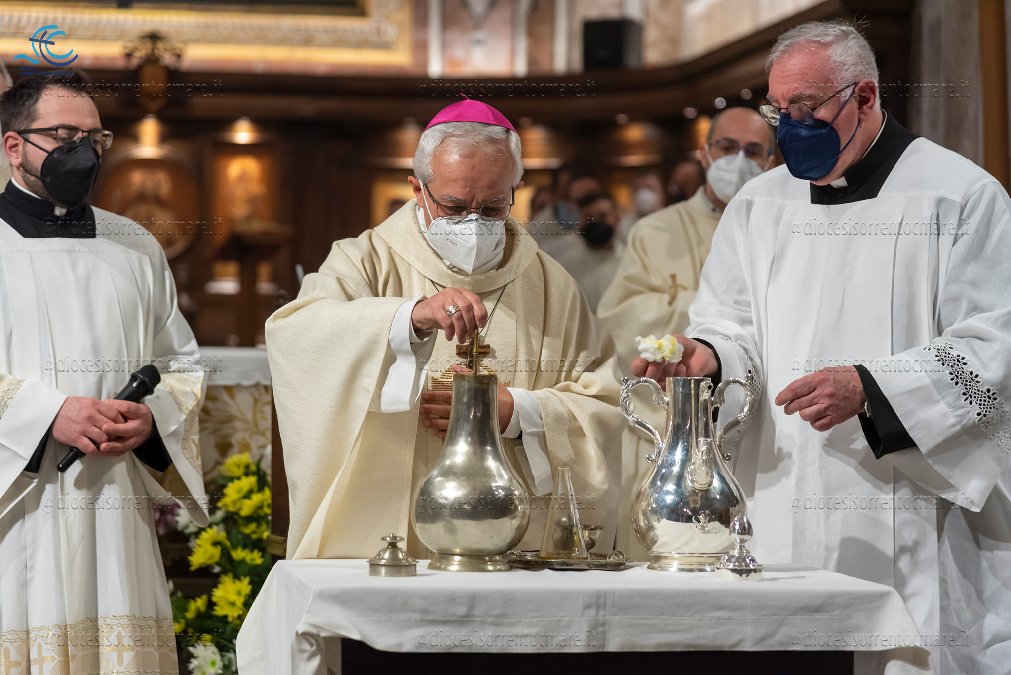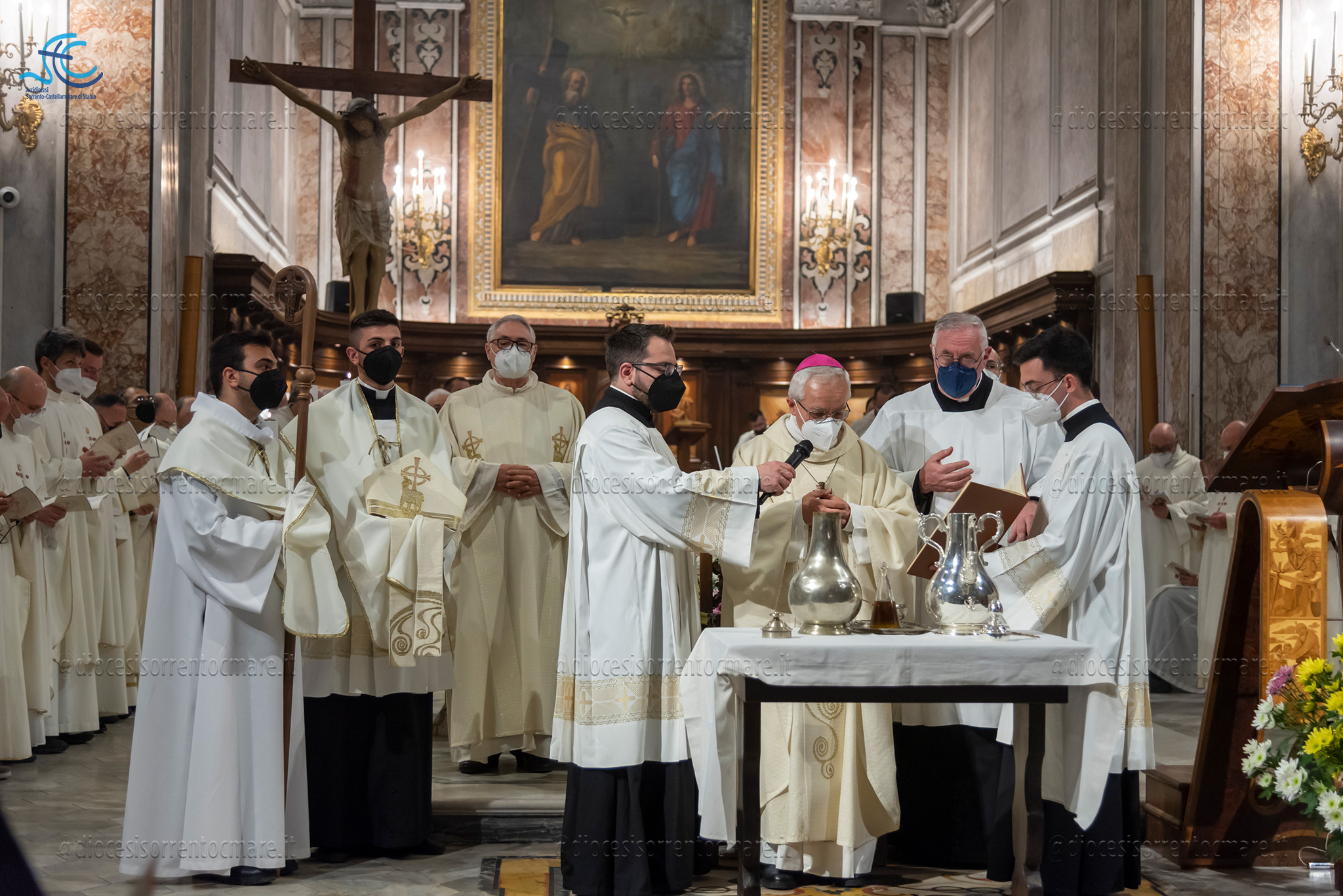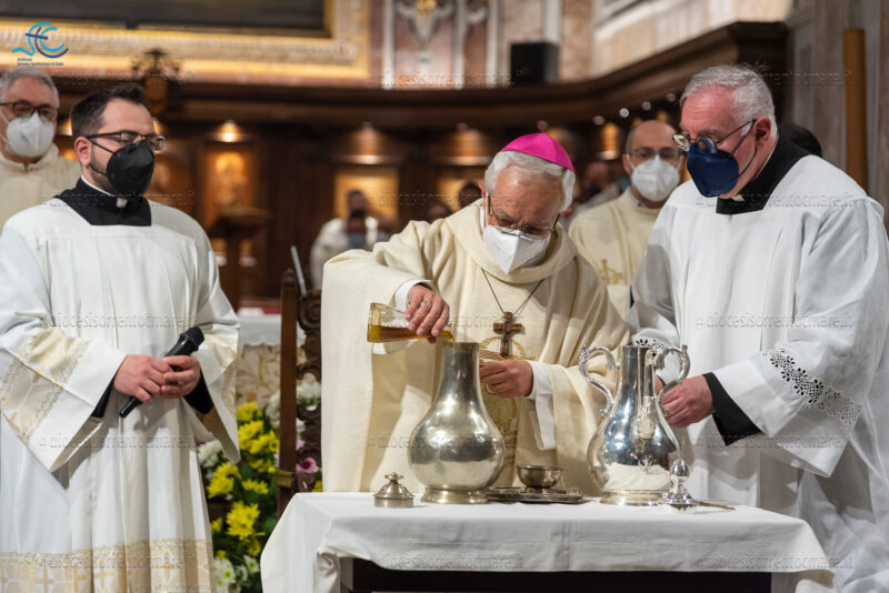 Si è celebrata ieri, presso la Cattedrale dei Santi Filippo e Giacomo di Sorrento, la messa del Crisma presieduta da Mons. Francesco Alfano. Una chiesa gremita, vestita di bianco e promesse rinnovate, ha accolto i fedeli e un centinaio di consacrati, presenti anche le monache contemplative.