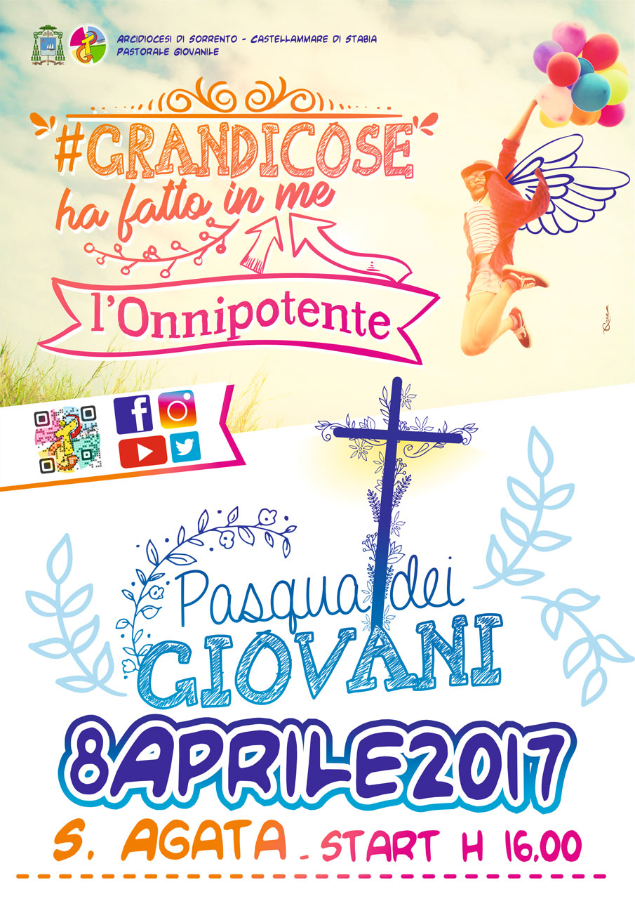 Manca poco allevento tanto atteso dai giovani per il periodo quaresimale. La Pasqua dei Giovani, in data 8 aprile a partire dalle ore 16, vedrà lequipe di Pastorale Giovanile e i giovani delle parrocchie di SantAgata accogliere i ragazzi presso la parrocchia di SantAgata (Corso SantAgata).