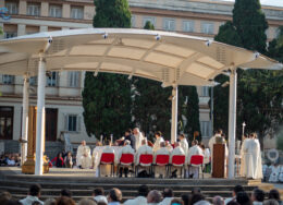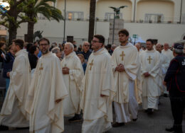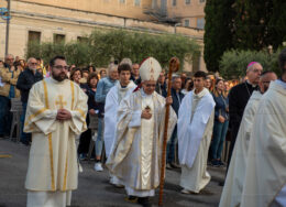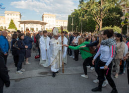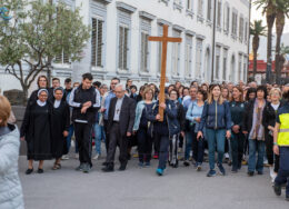 La liturgia ci fa vivere ogni anno il cammino perché impariamo a vivere a pieno e fino infondo la storia dell’umanità. Siamo “quelli della via”, i primi cristiani venivano chiamati così. Il pellegrinaggio ci ricorda che dobbiamo imparare a camminare. Siamo discepoli in cammino, questa è la Chiesa. Anche questa notte, come sempre, non manca mai la croce che ci precede. Nel camminare insieme, non siamo una truppa o un esercito, ma siamo discepoli che seguono Gesù. Discepoli che si lasciano spingere dal dono della Spirito, quel dono immenso che ci è stato promesso. Quello Spirito che ci rimette i piedi. Il Signore ci mette accanto fratelli e sorelle per sostenerci e crescere nell’amore. Facciamo spazio all’altro, non escludiamo nessuno, possiamo cogliere nelle parole di chi ci sta accanto o nei suoi gesti, quanto il Signore ci sta dicendo.