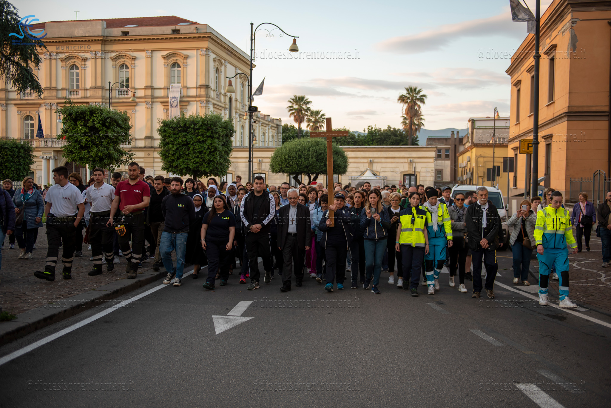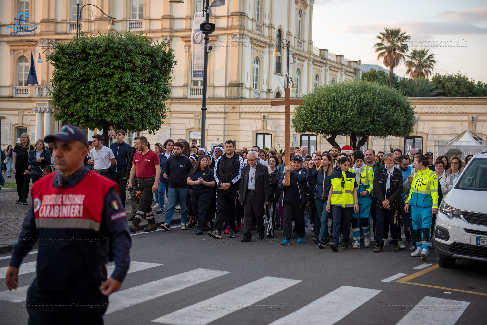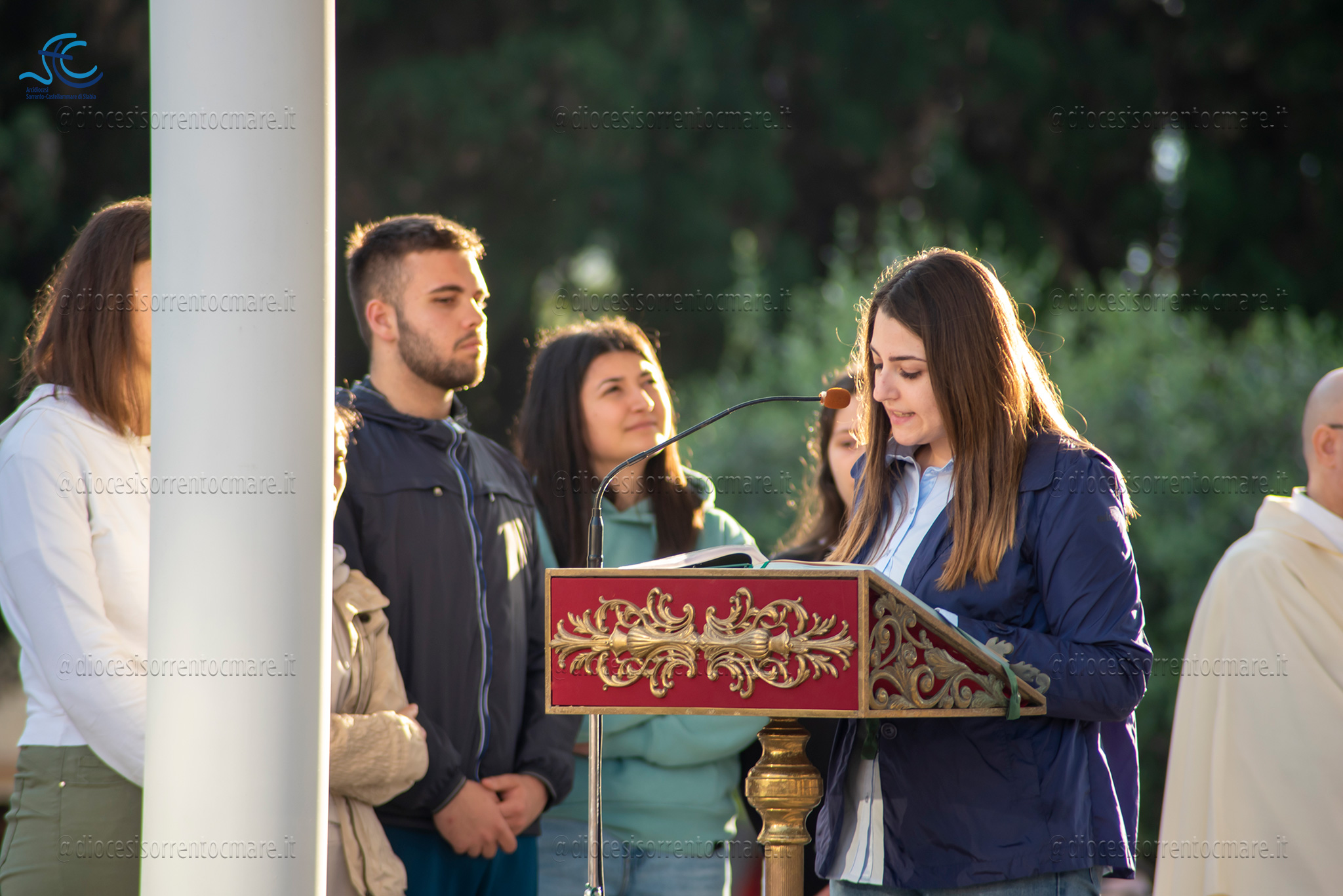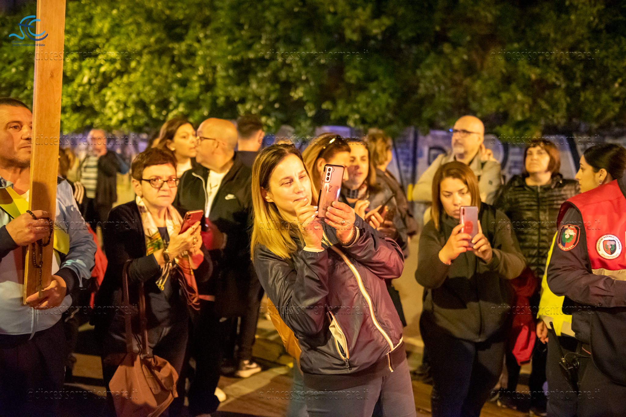La liturgia ci fa vivere ogni anno il cammino perché impariamo a vivere a pieno e fino infondo la storia dell’umanità. Siamo “quelli della via”, i primi cristiani venivano chiamati così. Il pellegrinaggio ci ricorda che dobbiamo imparare a camminare. Siamo discepoli in cammino, questa è la Chiesa. Anche questa notte, come sempre, non manca mai la croce che ci precede. Nel camminare insieme, non siamo una truppa o un esercito, ma siamo discepoli che seguono Gesù. Discepoli che si lasciano spingere dal dono della Spirito, quel dono immenso che ci è stato promesso. Quello Spirito che ci rimette i piedi. Il Signore ci mette accanto fratelli e sorelle per sostenerci e crescere nell’amore. Facciamo spazio all’altro, non escludiamo nessuno, possiamo cogliere nelle parole di chi ci sta accanto o nei suoi gesti, quanto il Signore ci sta dicendo.