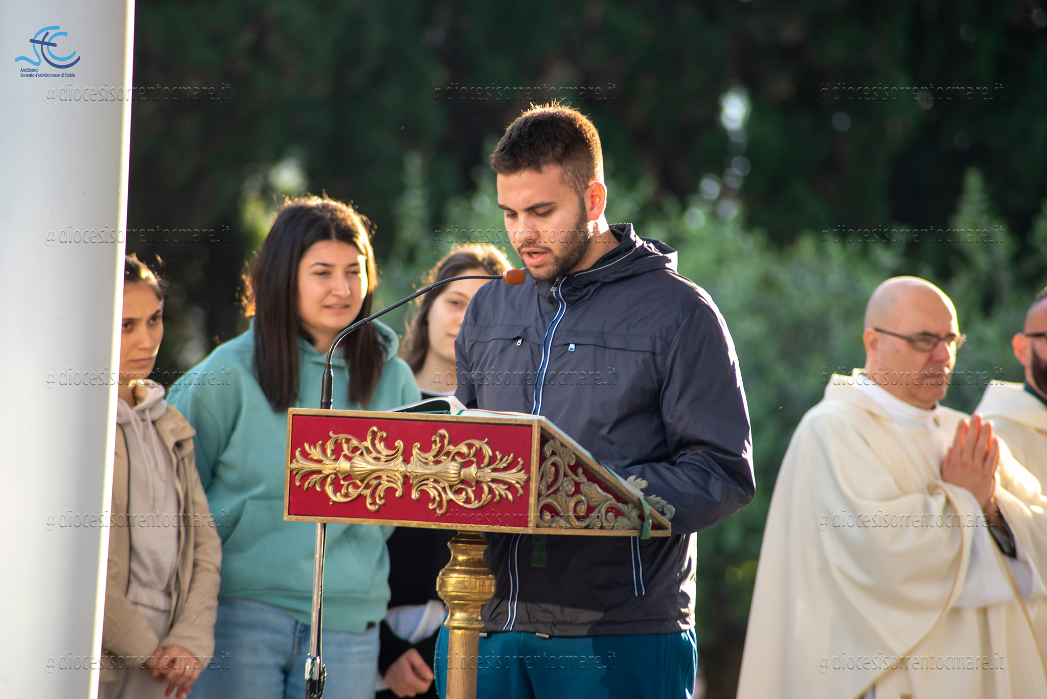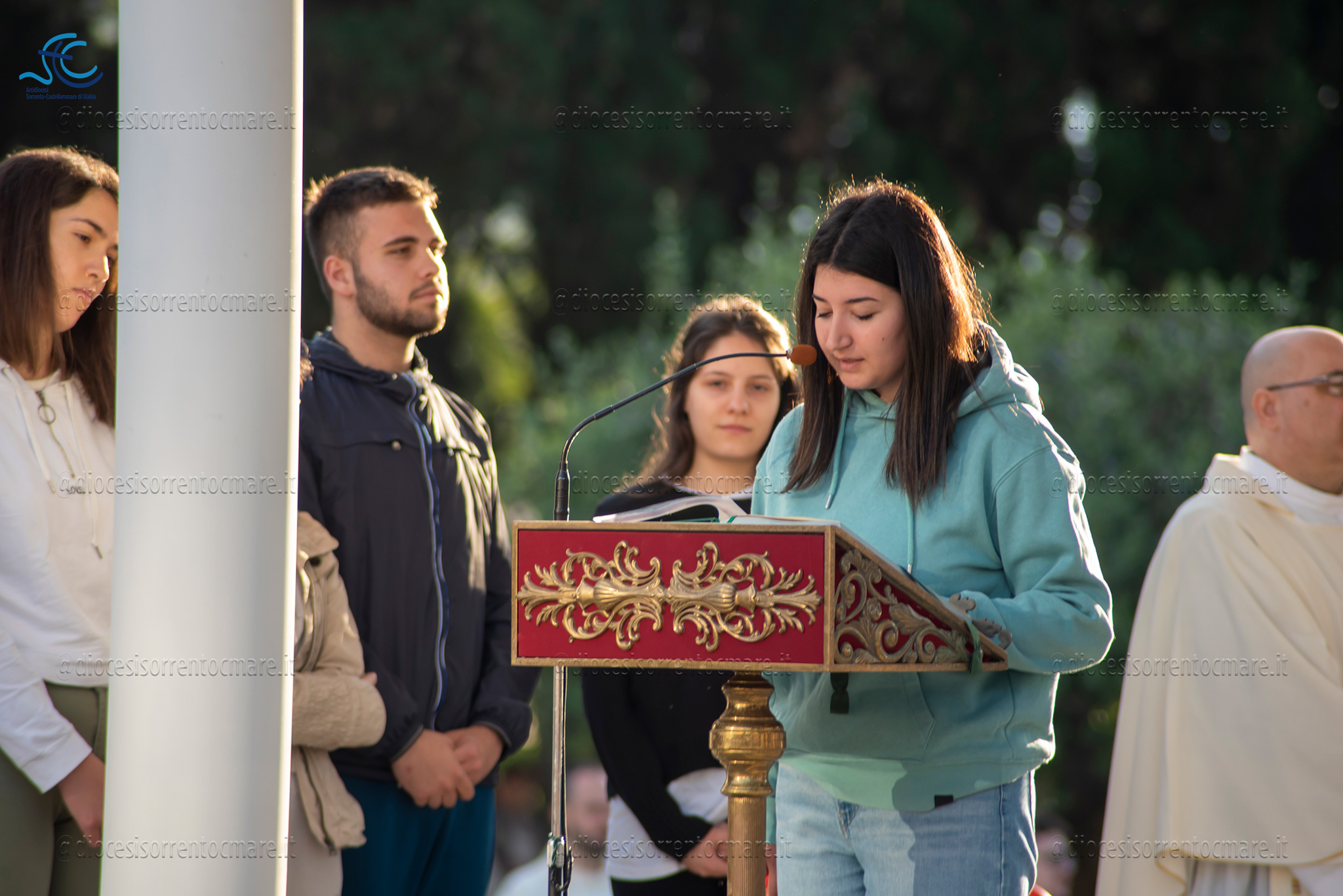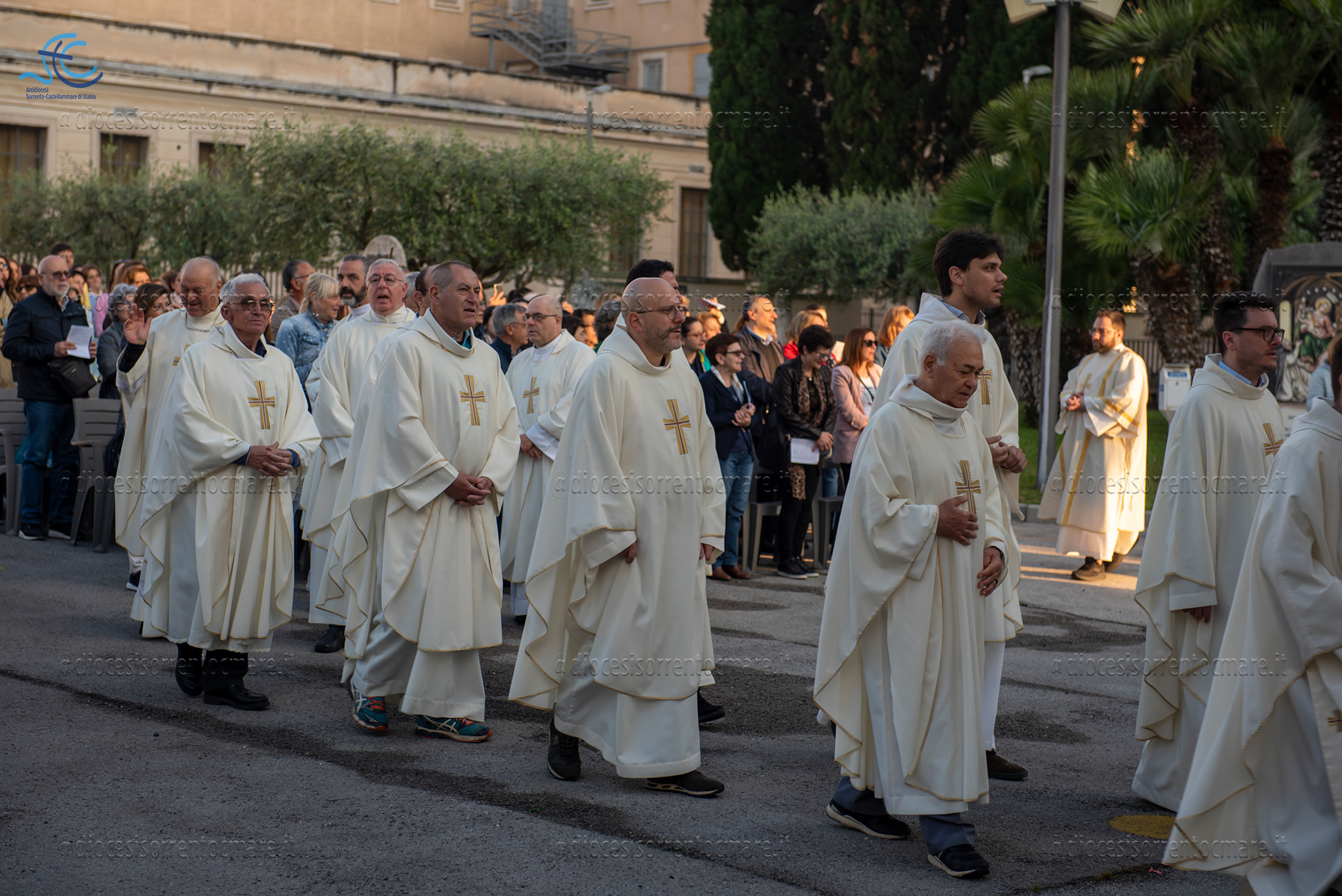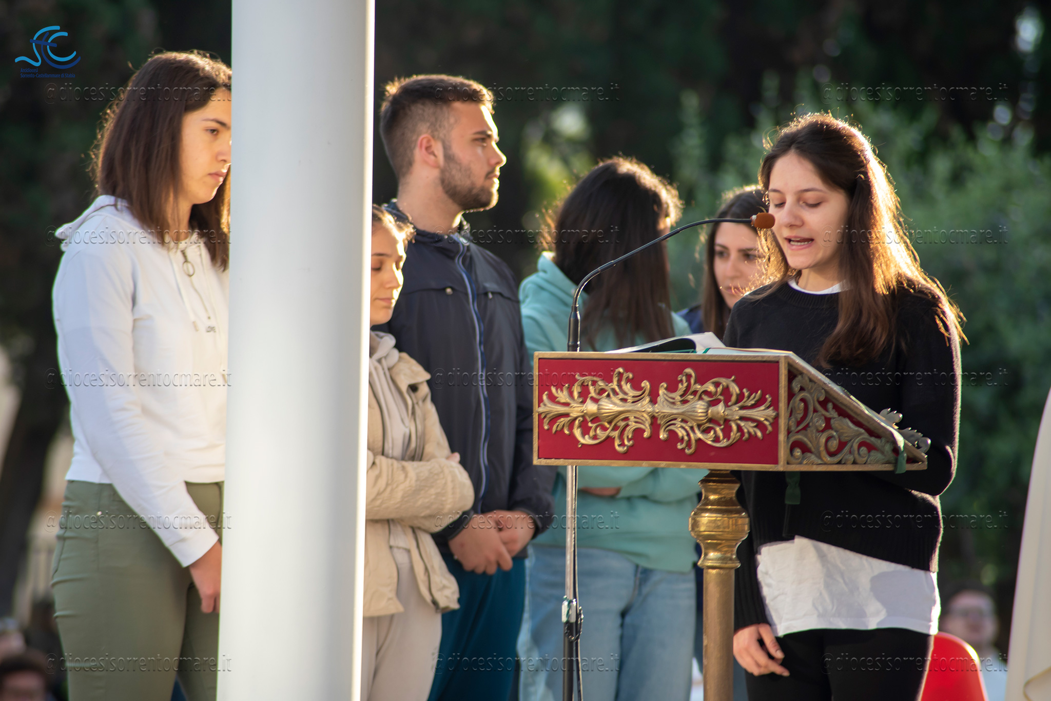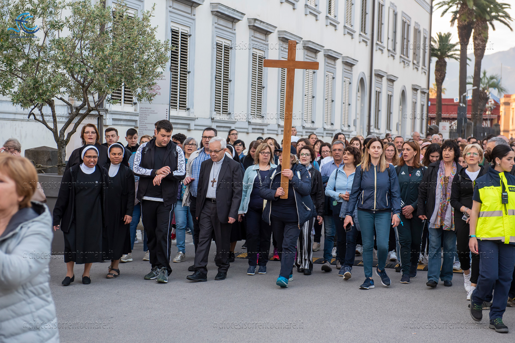 La liturgia ci fa vivere ogni anno il cammino perché impariamo a vivere a pieno e fino infondo la storia dell’umanità. Siamo “quelli della via”, i primi cristiani venivano chiamati così. Il pellegrinaggio ci ricorda che dobbiamo imparare a camminare. Siamo discepoli in cammino, questa è la Chiesa. Anche questa notte, come sempre, non manca mai la croce che ci precede. Nel camminare insieme, non siamo una truppa o un esercito, ma siamo discepoli che seguono Gesù. Discepoli che si lasciano spingere dal dono della Spirito, quel dono immenso che ci è stato promesso. Quello Spirito che ci rimette i piedi. Il Signore ci mette accanto fratelli e sorelle per sostenerci e crescere nell’amore. Facciamo spazio all’altro, non escludiamo nessuno, possiamo cogliere nelle parole di chi ci sta accanto o nei suoi gesti, quanto il Signore ci sta dicendo.