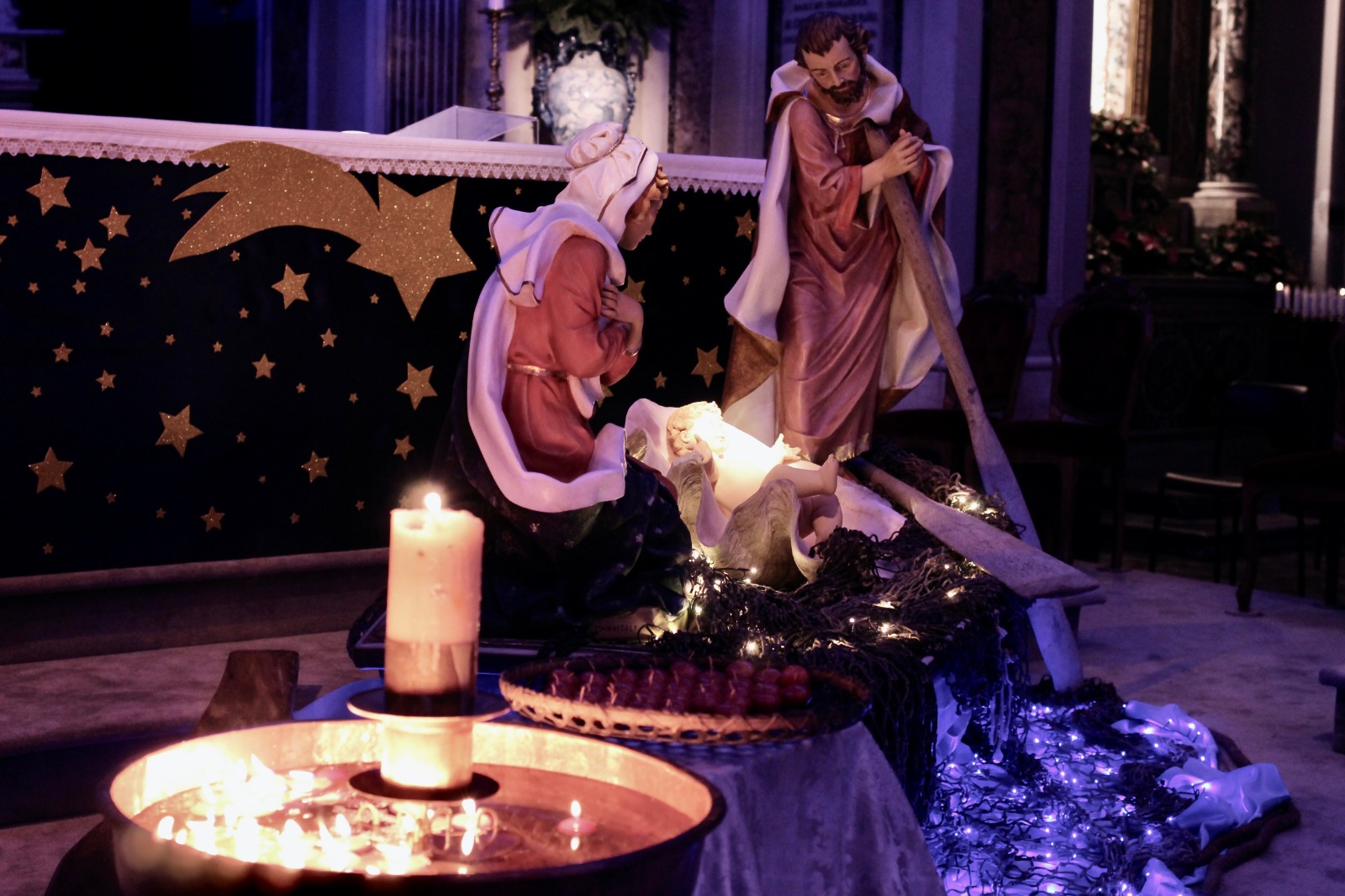 Davanti all’altare, accanto alla bella natività adagiata su di una barca, un catino di rame contenente dell’acqua, un cesto colmo di candele fluttuanti e il cero pasquale. Le persone che hanno vissuto una perdita sono state invitate ad accendere una candelina, ad adagiarla nel catino, darle il nome del figlio morto o mai nato, e ad affidare a Dio la sua anima.