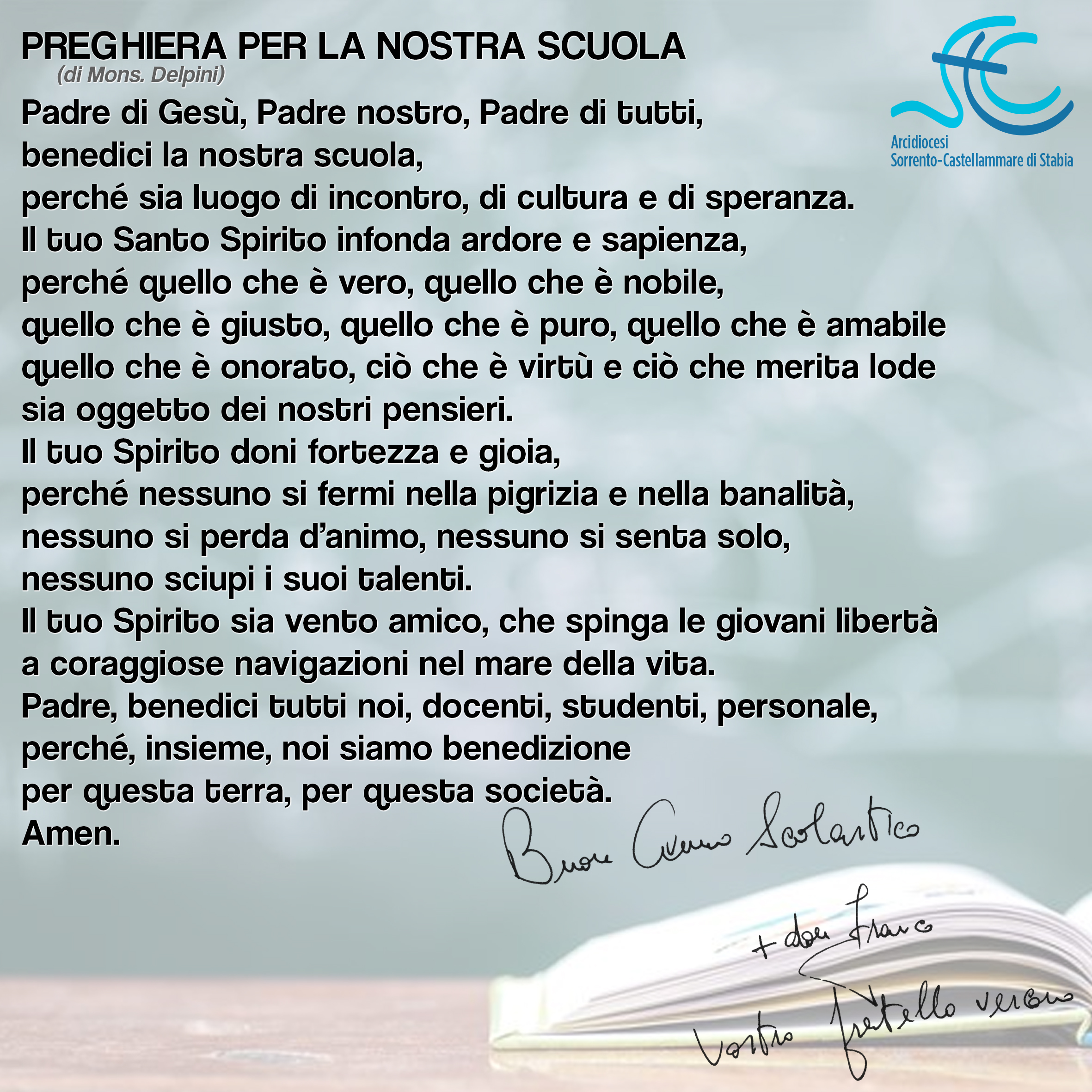 La prossima settimana comincia un nuovo anno scolastico, un inizio importante e particolare per quanto abbiamo vissuto in questi anni. Con questa preghiera scritta da Mons. Delpini, insieme all’augurio del nostro Vescovo Don Franco, vogliamo affidare tutto il mondo della scuola nella benedizione di Dio.