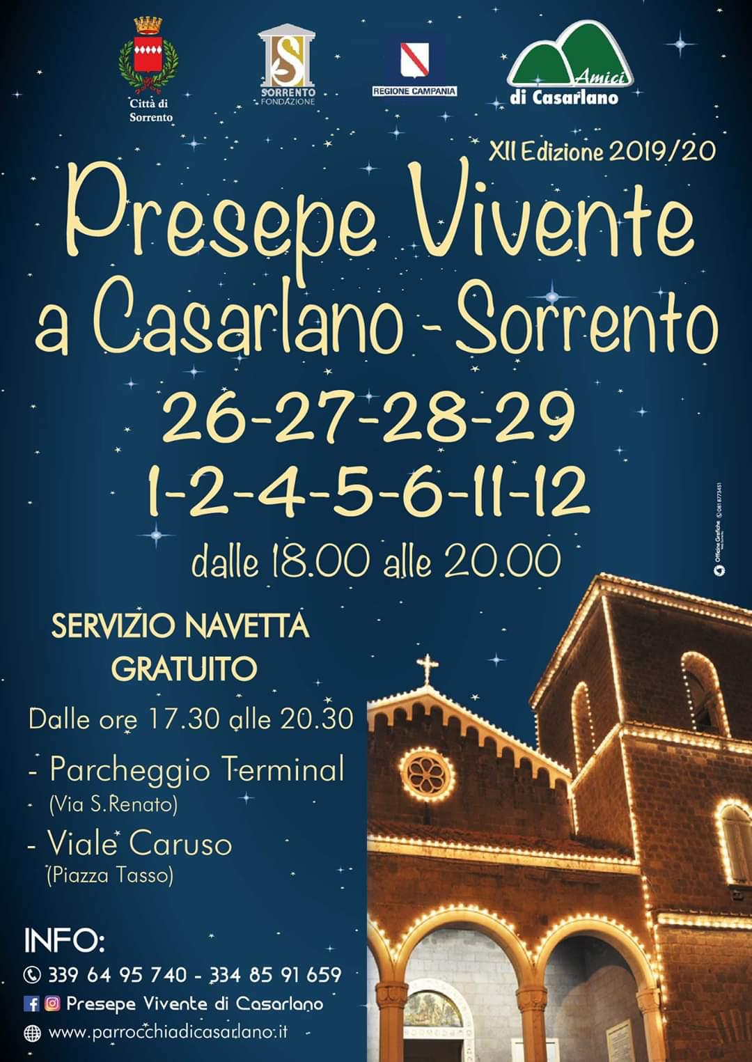 La Comunità parrocchiale di Casarlano, a partire dal mese di ottobre, progetta, costruisce ed appronta un caratteristico Presepe Vivente che quest’anno giunge alla XII edizione.