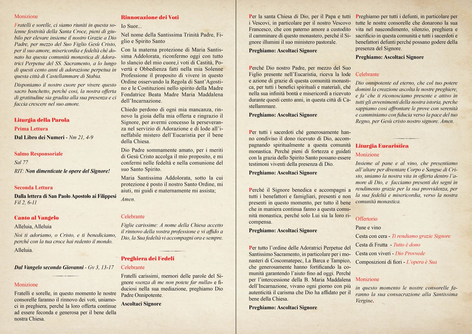 Verso la fine degli anni novanta quasi tutti i monasteri della federazione italiana hanno vissuto una forte crisi vocazionale, mentre l’Ordine si fortificava e fioriva sempre di più nell’America Latina, in particolare in Messico, da qui nacque l’intuizione della Comunità di chiedere aiuto ai Monasteri Messicani che corrisposero generosamente, fortificando la Comunità e garantendo l’aiuto fino ad oggi. In questi 100 anni la Comunità ha mantenuto l’adorazione perpetua al SS. Sacramento portando ai piedi dell’altare le sofferenze e le speranze della nostra Chiesa diocesana.