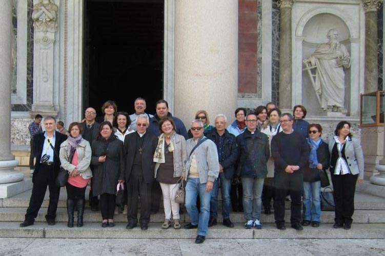La celebrazione eucaristica alle 11 in una cappella, accogliente e a misura, della Basilica di San Paolo fuori le mura, il primo monumento visitato, è stata loccasione di pregare insieme come raramente in passato e per il vescovo di commentare il capitolo 5 degli Atti laddove un angelo libera gli apostoli imprigionati e li esorta: «Andate e proclamate al popolo, nel tempio, tutte queste parole di vita» (At.5,20). Quale invito sarebbe stato più opportuno considerati i luoghi e le persone interessate? Neppure è sfuggito che intorno alla mensa cera il vescovo, un presbitero, due diaconi, uno permanente, laltro che si prepara al sacerdozio e un gruppo di cristiani che, per quanto tutti docenti di religione, ben potevano rappresentare tutti i cristiani nelle varie situazioni della vita. Quasi uno spaccato della Chiesa di Dio.