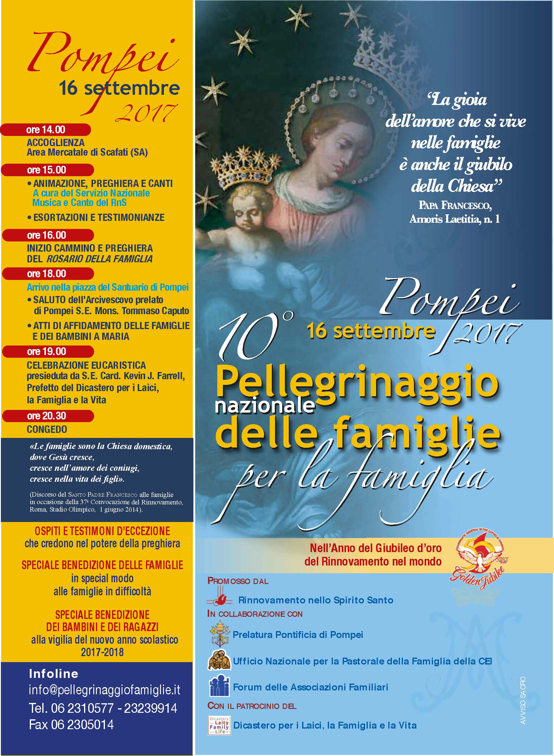 Le nostre famiglie si porteranno ai piedi della Madonna, per confidarle i desideri che albergano nei loro cuori e per chiederle sostegno e forza nel combattimento contro il male che le vuole distruggere. «Le famiglie sono la Chiesa domestica, dove Gesù cresce, cresce nell’amore dei coniugi, cresce nella vita dei figli. E per questo il nemico attacca tanto la famiglia: Il demonio non la vuole! E cerca di distruggerla, cerca di far sì che l’amore non sia lì». (Discorso di Papa Francesco alle famiglie in occasione della 37° Convocazione del Rinnovamento, Roma, Stadio Olimpico 1 giugno 2014).
