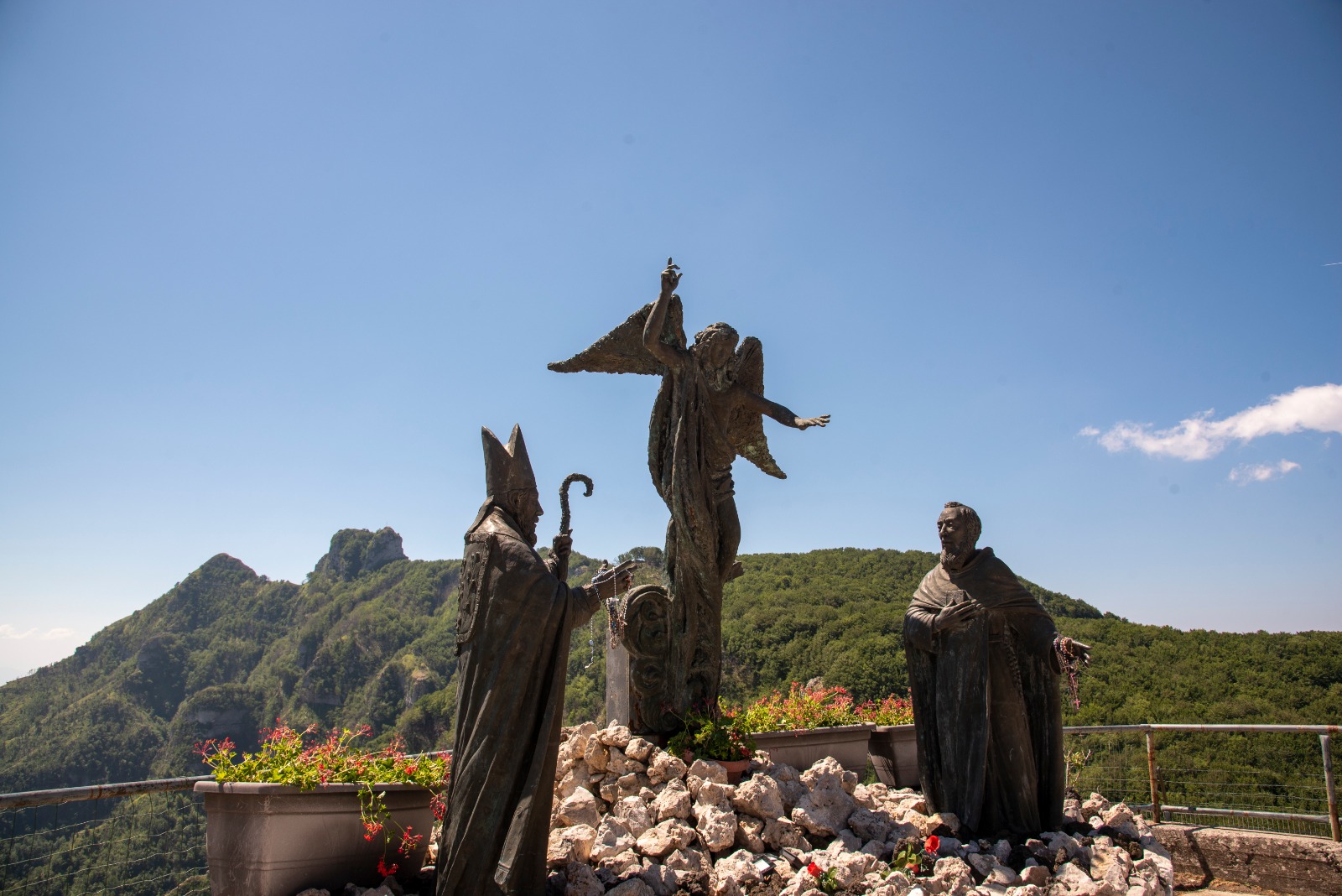 Faro di irraggiamento fu il tempietto sorto sul Molaro, la cima più alta dei Monti Lattari e del Faito in particolare, anche chiamato Monte Sant’Angelo, da dove l’Arcangelo presiedeva su tutto il golfo di Napoli e presso cui si rifugiavano le popolazioni della pianura in caso di pericolo. Celebre il pellegrinaggio annuale in occasione della festa della dedicazione che, dal 29 luglio al primo agosto, riuniva sul monte migliaia di pellegrini. La fondazione del santuario di San Michele sul Faito è tradizionalmente legata alla vita dei Santi Antonino e Catello, patroni della Diocesi e ad essi attribuita da uno scritto risalente all’undicesimo secolo, che va sotto il nome di Anonimo Sorrentino. Emblematica la statua presente all’esterno del santuario, che vede protagonisti i tre santi.