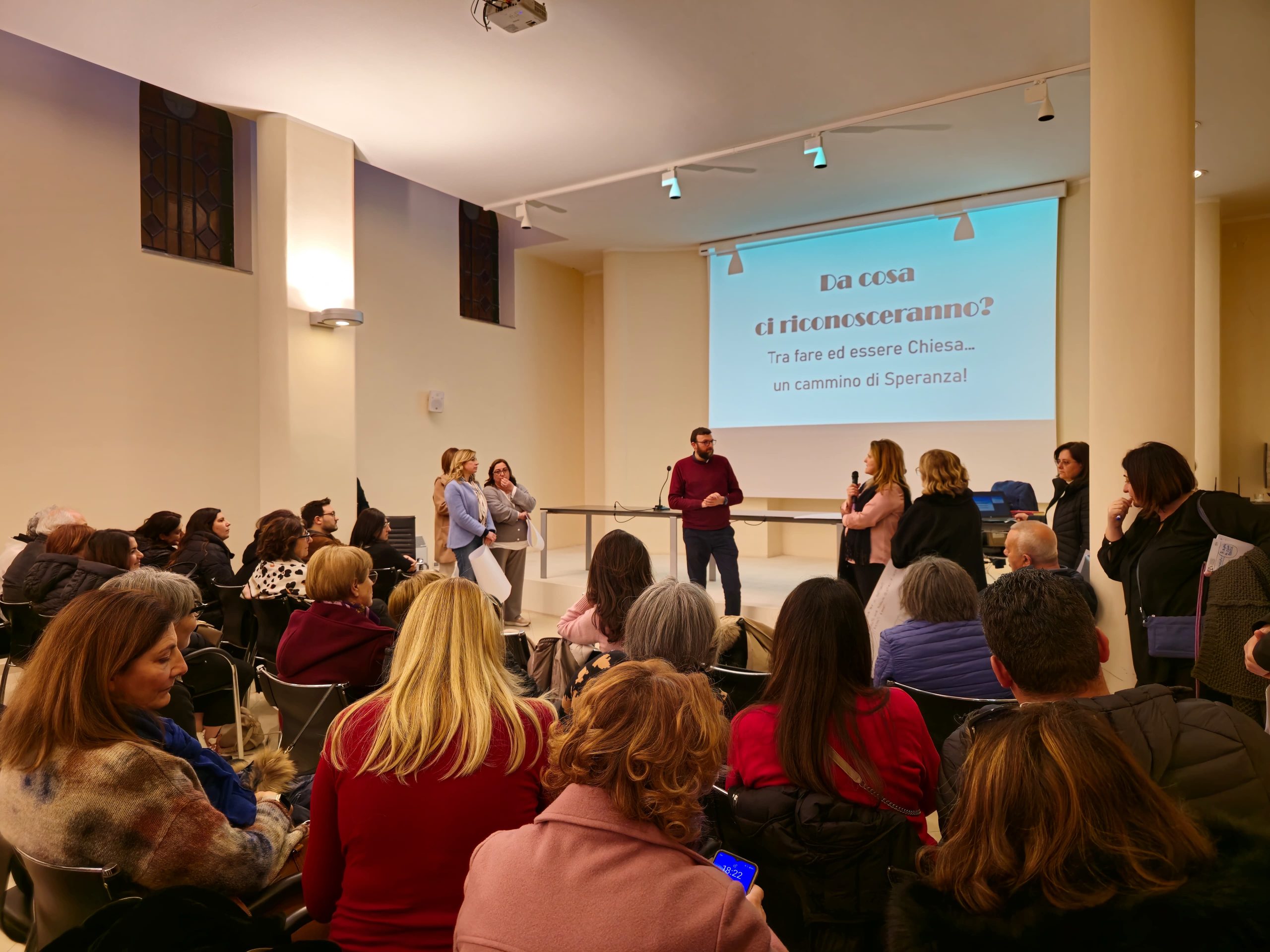 C’è bisogno di un cambiamento di cultura e di mentalità pastorale, di provare strade diverse di evangelizzazione, uscendo fuori dalle nostre comunità per annunciare il Vangelo agli uomini e alle donne di questo nostro tempo… Alla fine di questa relazione coinvolgente e ricchissima per i tanti spunti di riflessione, don Nino e i nostri sacerdoti ci hanno diviso in piccoli gruppi- laboratori, per cercare di darci degli obiettivi e formulare proposte concrete di pastorale in diversi ambiti: anziani, omoaffettività, giovani, cultura, economia circolare, solidarietà, creato, fraternità, pace e corresponsabilità.