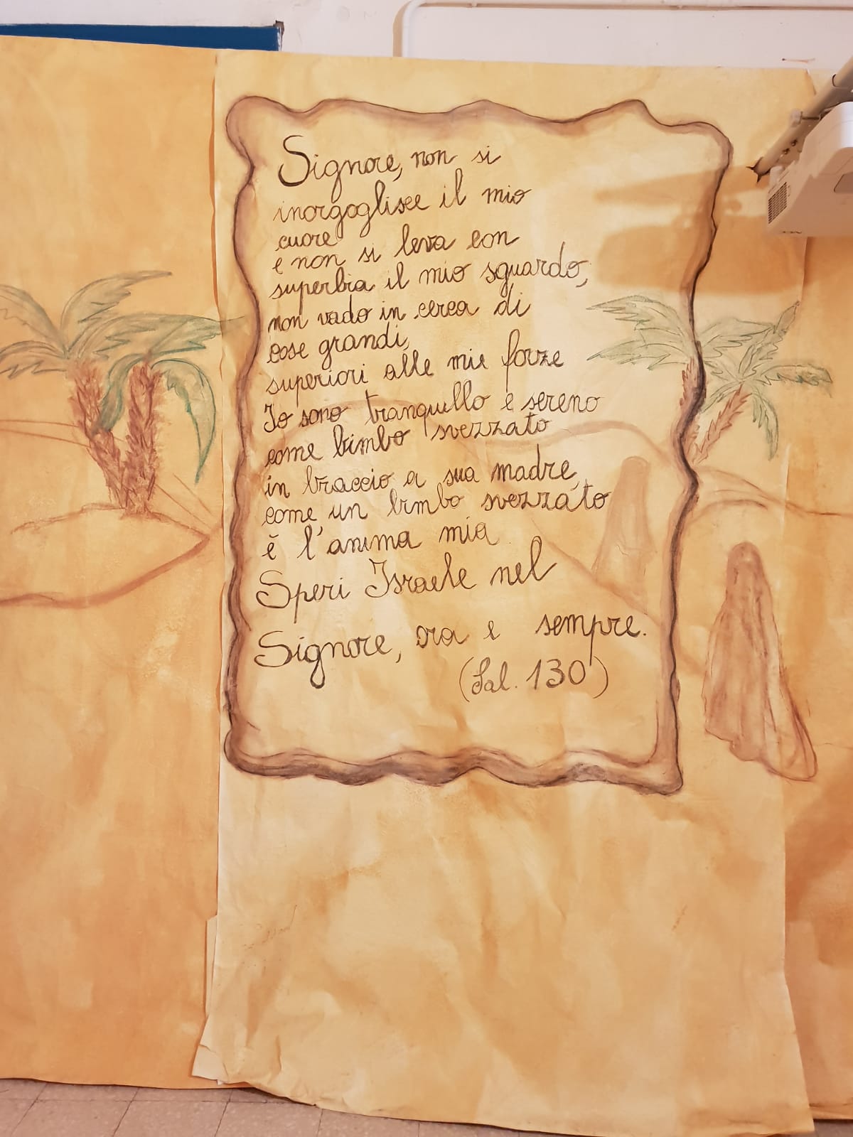 Le scene sono state allestite nelle aule della scuola e nella parrocchia. L’allestimento ha coinvolto la scuola, la parrocchia, gruppi laici e persone del quartiere. La cura, la dedizione, la sollecitudine nella preparazione del percorso e l’attenzione ai dettagli, ha unito la comunità tutta che ha risposto positivamente alla realizzazione di questa iniziativa, prodigandosi per la sua riuscita. Ognuno ha offerto il suo contributo attivamente in quelle sere o silenziosamente, dietro le quinte, come chi ha preparato e messo su le varie scene. Questo calore di un quartiere intero, ha riscaldato i cuori delle tante persone che sono arrivate e hanno trovato l’accoglienza e la premura di tutta la comunità che sta imparando a crescere insieme, nutrendosi dell’unico pane di vita: Gesù Cristo.