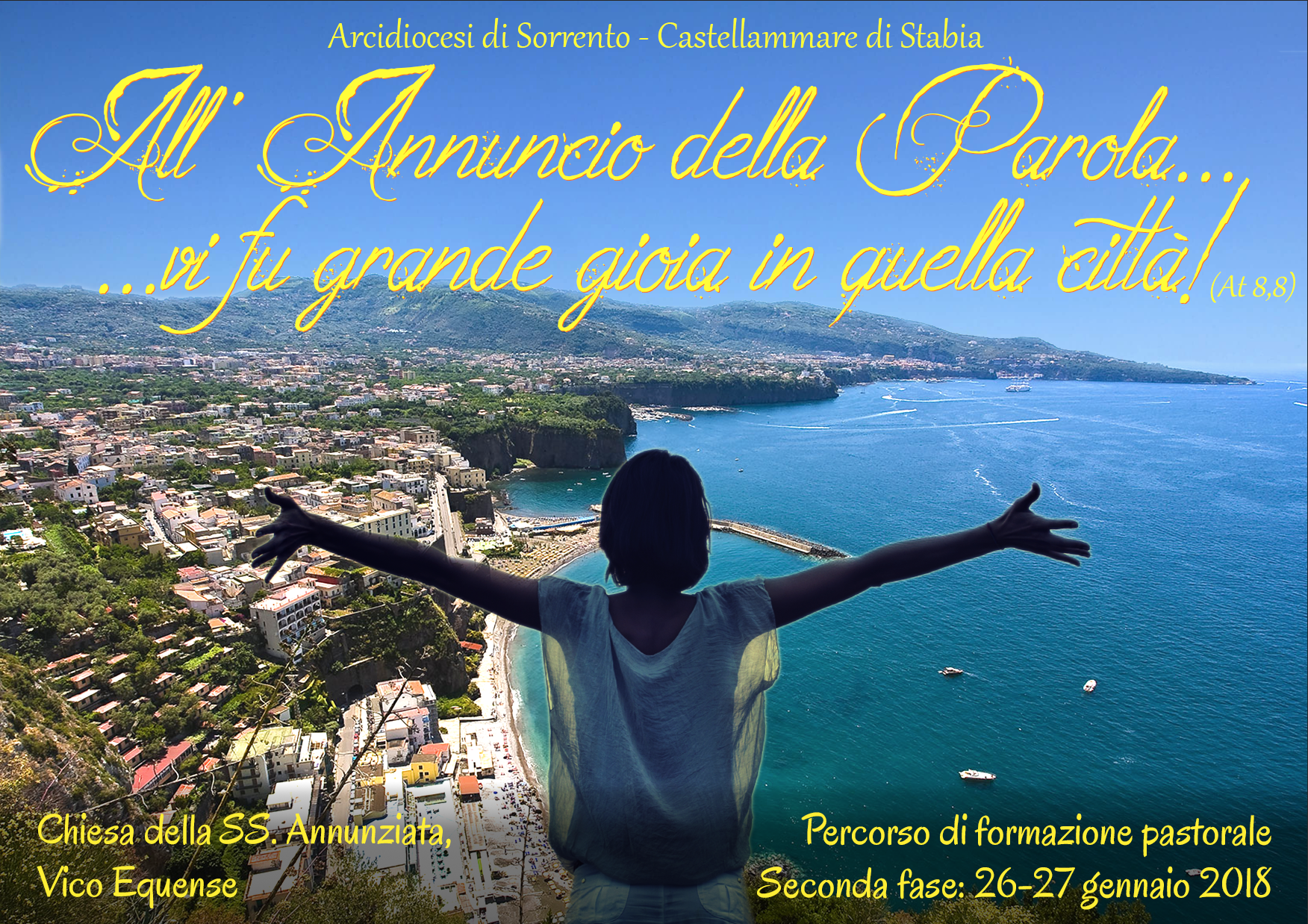 Domani 26 e sabato 27, presso la Chiesa della SS. Annunziata di Vico Equense, si terrà la seconda fase del percorso di formazione pastorale, iniziato già a novembre. Tale incontro vedrà coinvolti non solo i sacerdoti e gli operati pastorali della curia, ma anche e soprattutto i rappresentati delle comunità parrocchiali.