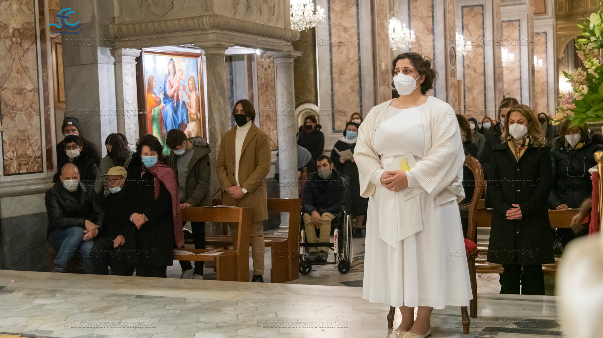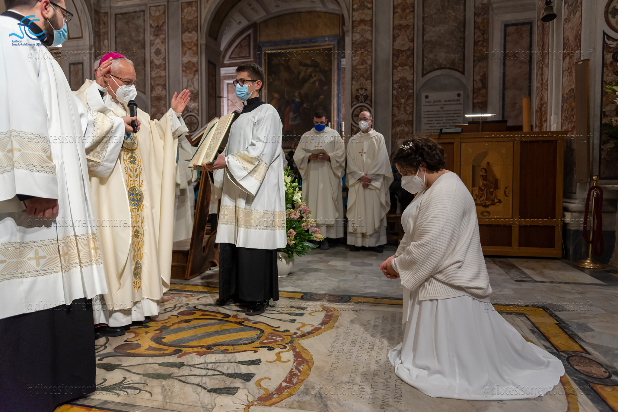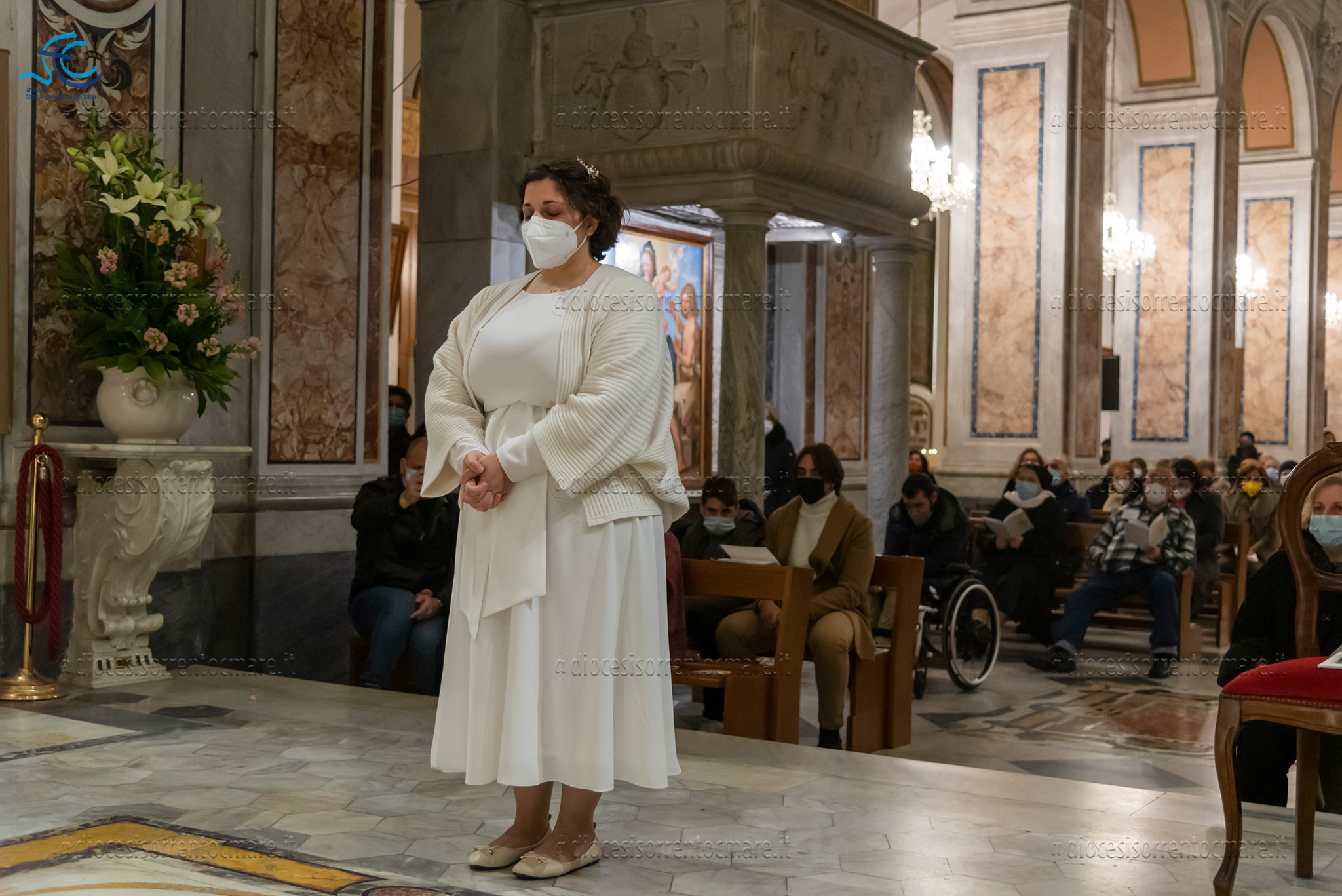 “Oggi è la festa della nostra Chiesa, l’Immacolata Concezione, e noi la celebriamo in modo speciale. Siamo testimoni di un dono di amore e predilezione. Siamo predestinati, siamo eredi e figli, ci viene in aiuto Maria in questo grande mistero, con il suo silenzio a fidarci di Dio. Le vergini consacrate ci permettono di entrare di più nel mistero della Chiesa, grazie alla loro dimensione sponsale. Eccola, una ragazza che ancora non ha pienezza dell’esperienza della vita, che sceglie con gioia di vivere questa incompletezza. Questo è un segno, per tutta la chiesa – le parole di Mons. Francesco Alfano, nel silenzio della Cattedrale di Sorrento.
