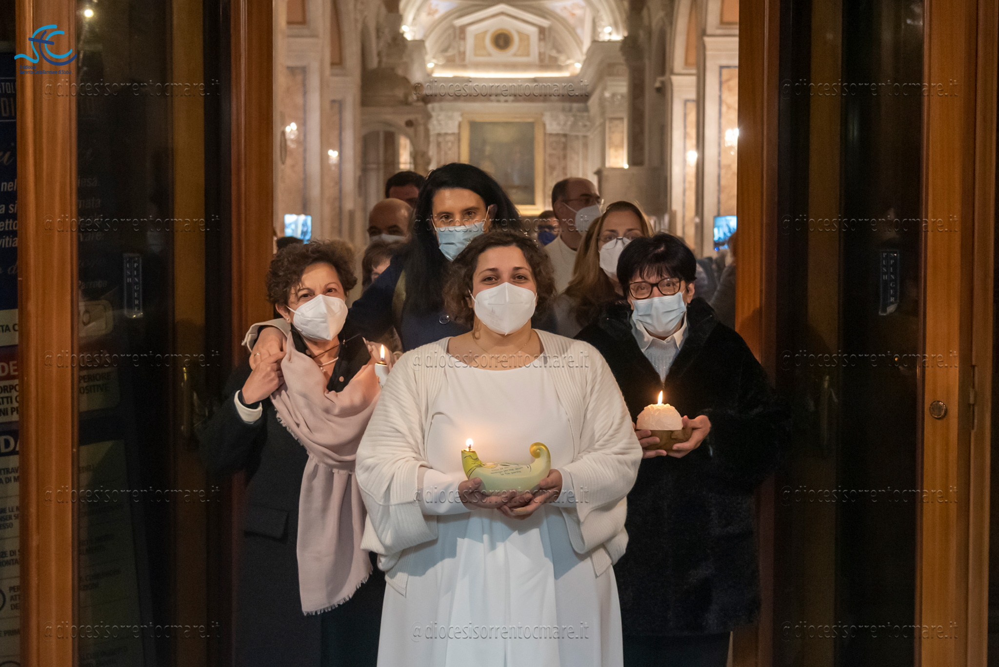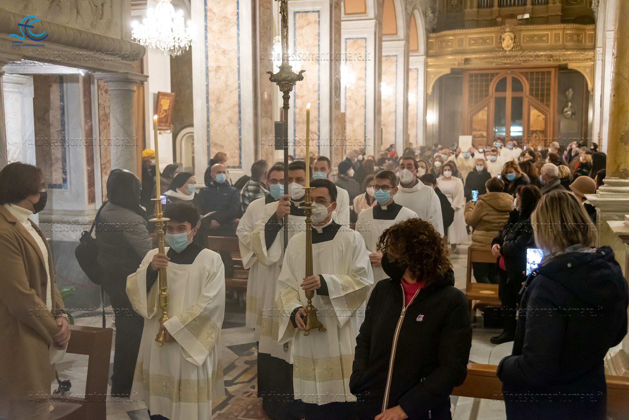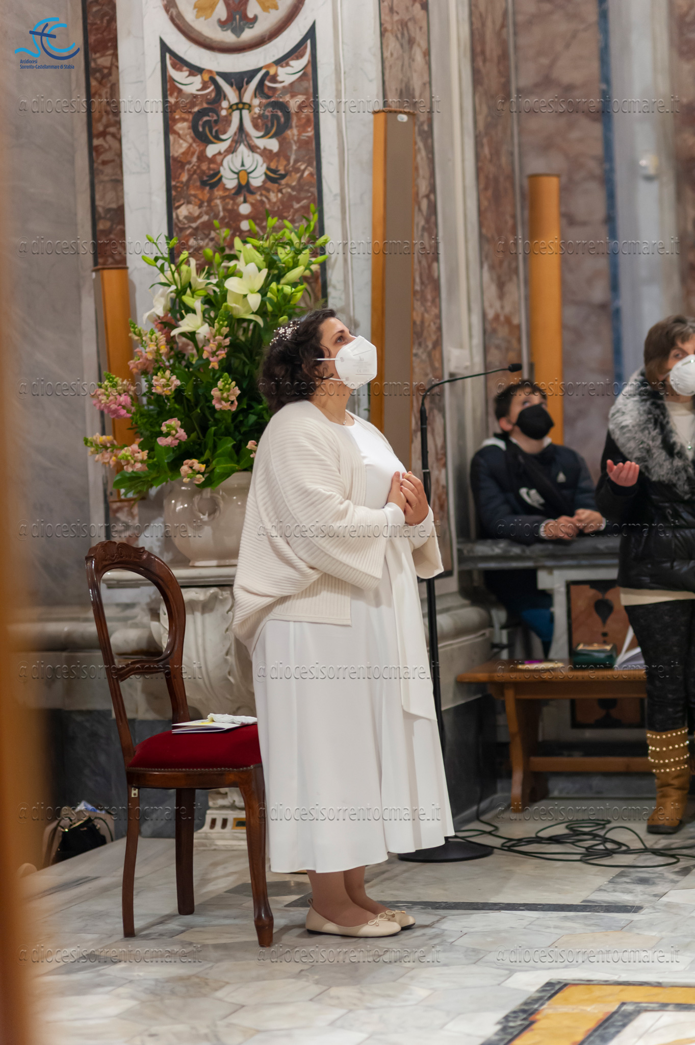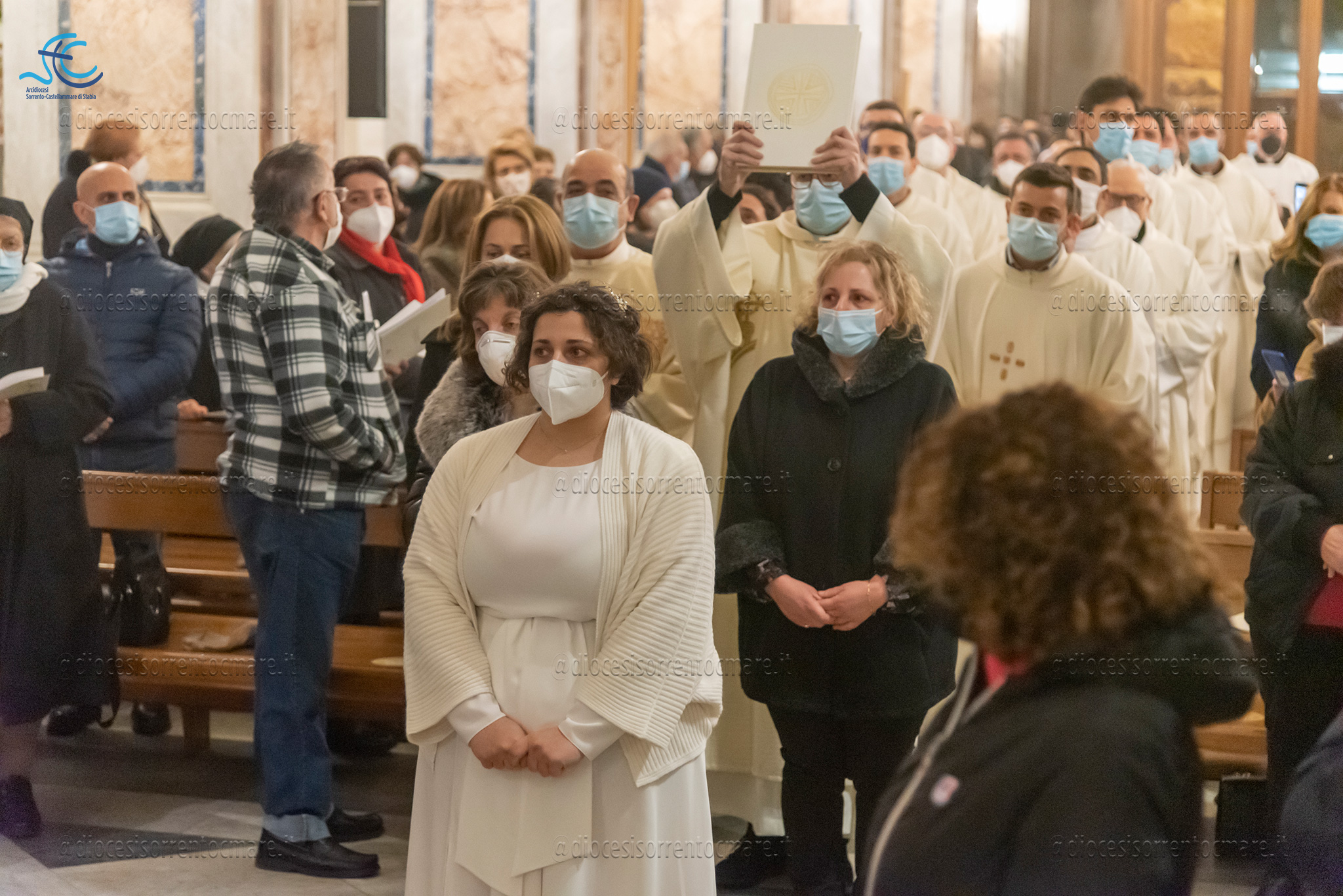 “Oggi è la festa della nostra Chiesa, l’Immacolata Concezione, e noi la celebriamo in modo speciale. Siamo testimoni di un dono di amore e predilezione. Siamo predestinati, siamo eredi e figli, ci viene in aiuto Maria in questo grande mistero, con il suo silenzio a fidarci di Dio. Le vergini consacrate ci permettono di entrare di più nel mistero della Chiesa, grazie alla loro dimensione sponsale. Eccola, una ragazza che ancora non ha pienezza dell’esperienza della vita, che sceglie con gioia di vivere questa incompletezza. Questo è un segno, per tutta la chiesa – le parole di Mons. Francesco Alfano, nel silenzio della Cattedrale di Sorrento.