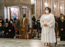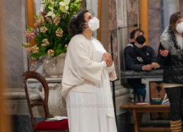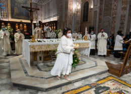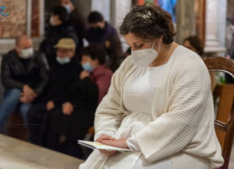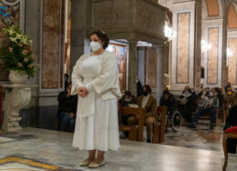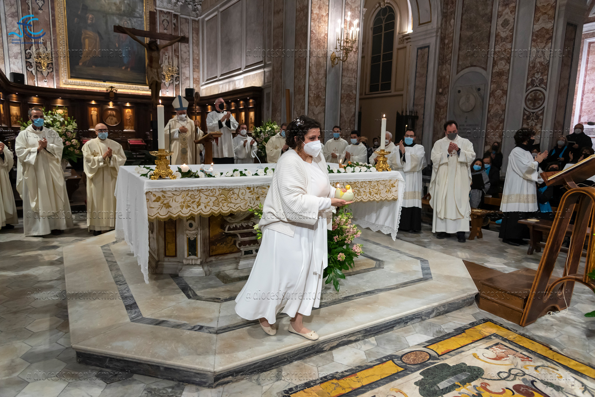 Antonietta Palummo, di anni 36, originaria di Lettere, ha espresso ieri sera il suo “Eccomi”, vestita di bianco, nella sua semplicità e con il suo sorriso. L’emozionante rito della consecratio virginum, il più antico della Chiesa, si è celebrato ieri sera sotto gli occhi dei presenti e di chi ha seguito la diretta in streaming. Mons. Alfano, prosegue la sua intensa omelia, dando del “tu” alla vergine sposa, la cui tensione quasi si poteva toccare con mano.