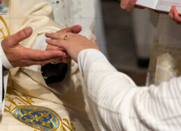 In seguito all’interrogazione del Vescovo, Antonietta si è prostrata ai piedi dell’altare durante le litanie, ha rinnovato la sua volontà di consacrarsi con la perpetua castità al Signore, attraverso i due gesti simbolici del rito: la consegna dell’anello nuziale da parte del Vescovo e del libro della liturgia delle ore. La celebrazione è proseguita con la professione di fede e la liturgia eucaristica.