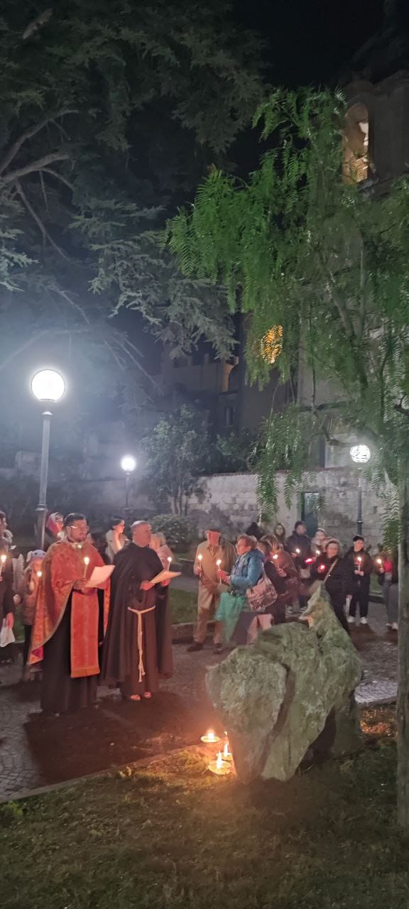 La celebrazione è stata presieduta da padre Igor, cappellano della comunità ucraino cattolica di rito bizantino della diocesi di Sorrento Castellammare di Stabia, il quale ci ha parlato durante la breve omelia delle difficoltà del suo popolo soprattutto in quest’ultimo anno di guerra e di come la normalità di una vita quotidiana tranquilla sia stata alterata da un invasione assurda e spietata; con le parole rotte dall’emozione ha più volte ringraziato gli italiani e quanti stanno aiutando la sua comunità in questo momento difficile.