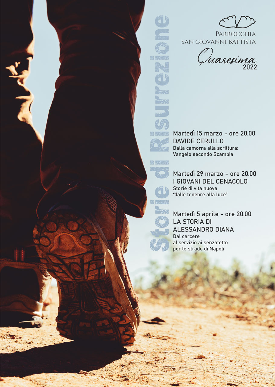Storie di esodo e di risurrezione quelle che ascolteremo in alcuni martedì di questa Quaresima 2022: Davide Cerullo, dallo spaccio al Vangelo secondo Scampia, i giovani della comunità “Il cenacolo” di Roma, che Papa Francesco ha visitato a sorpresa lo scorso dicembre e ha ricordato a loro e a noi di “non avere paura della realtà, della verità, delle nostre miserie”, perché “a Gesù piace la realtà come è, non truccata”, Alessandro Diana, che a Napoli è passato dalla strada del carcere al servizio ai poveri.