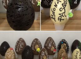 Le sue uova di Pasqua sono delle vere opere d’arte, oltre che favolose nel gusto. Il cioccolato che utilizza è quello Belga, ma l’ingrediente migliore resta sempre la passione. Per realizzare un uovo, impiega circa un’ora, dal temperaggio del cioccolato – la parte più complessa – all’incartamento. È un lavoro di precisione e di attesa. Luca, ne ha per tutti i gusti: fondente, al latte, bianco, pistacchio, caramello, caramello salato e bianco. Con l’aggiunta di nocciole, mandorle, pistacchi, frutta secca, fava di cacao. Per la sorpresa? Nessun problema, scegliete quella che desiderate e lui farà il resto. Vi state preoccupando del peso e della dimensione? Tranquilli, ce n’è per grandi e piccini.
