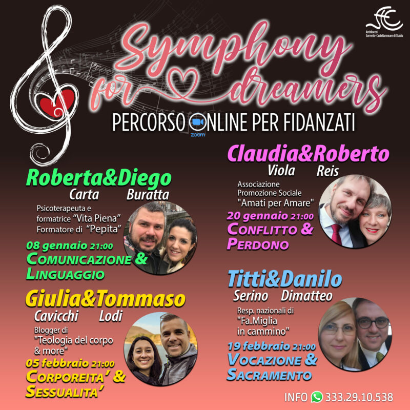 Di qui abbiamo cominciato a confrontarci con gli altri servizi diocesani, in particolare con la pastorale giovanile, ed è nata la proposta online per fidanzati: “SYMPHONY FOR DREAMERS”