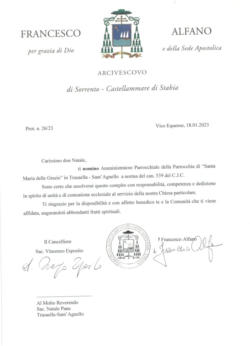 Amministratore Parrocchiale S. Maria delle Grazie in Trasaella Sant’Agnello