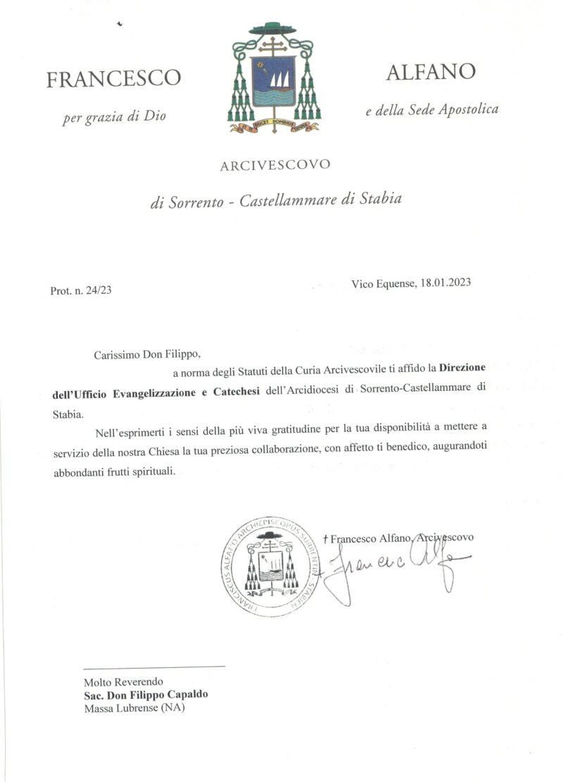 Don Filippo Capaldo, in data 18 gennaio 2023, è stato nominato Direttore dell'Ufficio Evangelizzazione e Catechesi. Read More
