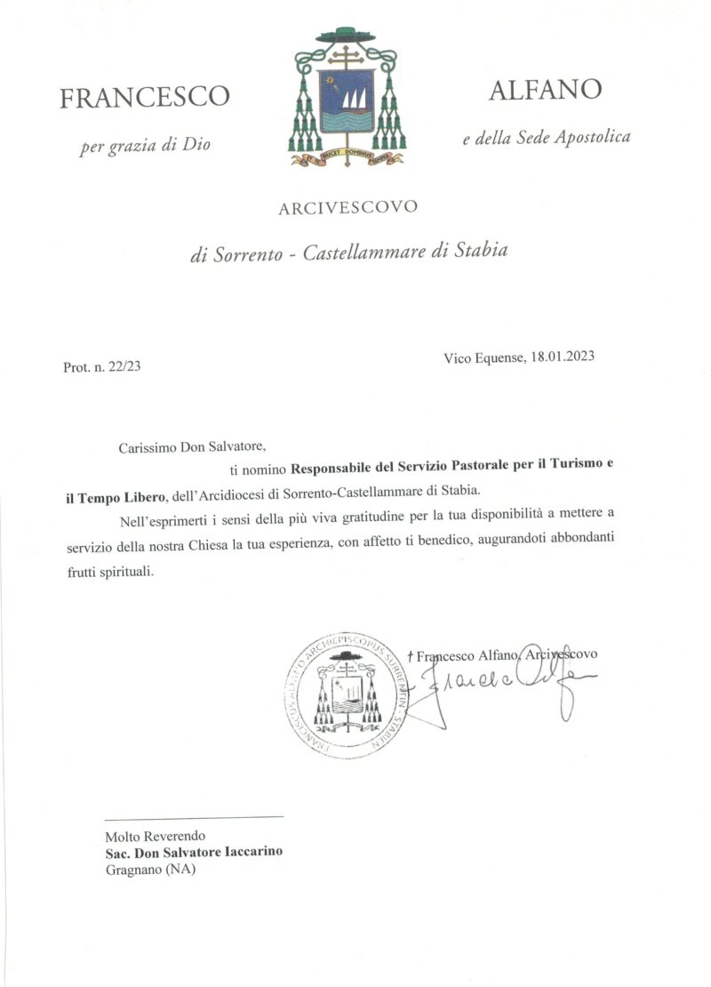 Don Salvatore Iaccarino, in data 18 gennaio 2023, è stato nominato Responsabile del Servizio Pastorale per il Turismo e i Tempo Libero. Read More