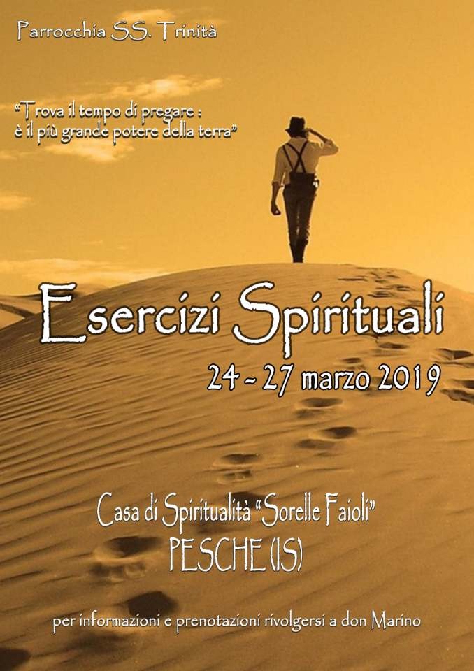 Dal 24 al 27 marzo si sono svolti a Pesche gli esercizi spirituali guidati da don Marino De Rosa, parroco della SS. Trinità a Piano di Sorrento, per un gruppo di persone. Sono stati tre giorni vissuti intensamente; don Marino ha trattato due temi fondamentali per la vita di ogni cristiano: Il dono della preghiera, […]