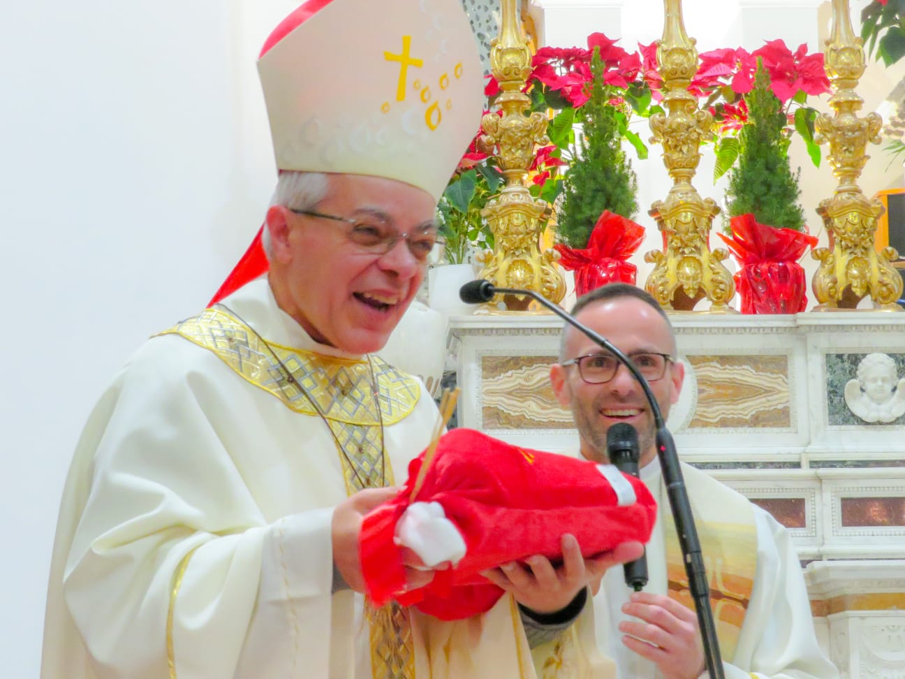 Il nostro vescovo è stato ancora con noi a celebrare l’Epifania del Signore. Prima della benedizione finale una sorpresa anche per don Franco: la piccola Claudia gli ha letto una lettera scritta di suo pugno, di benvenuto e ringraziamento a nome della comunità mentre Andrea gli consegnava una ricca calza.