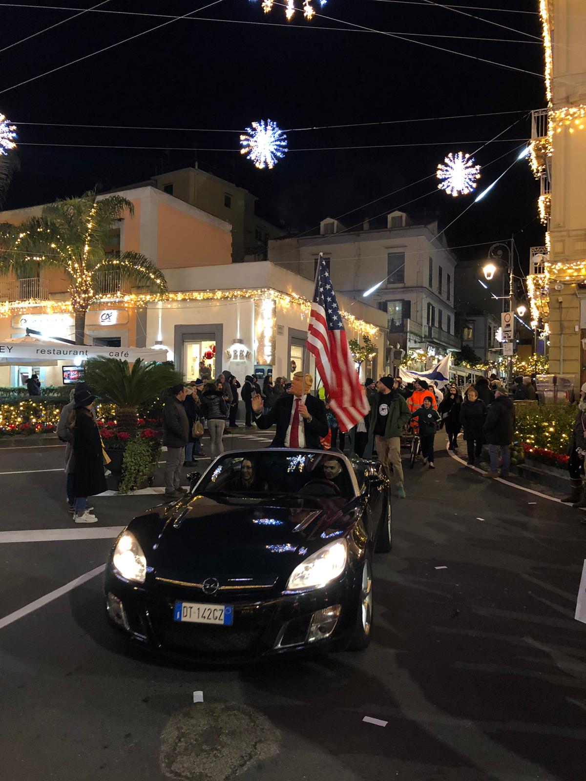 La serata del 28 Dicembre è stata caratterizzata da una sfilata per le strade del centro e da esibizioni che hanno avuto luogo in Piazza Siani. Ogni squadra ha sfilato in compagnia di Greta Thunberg, madrina della serata, accompagnata dal presidente degli Stati Uniti d’America Donald Trump e dal presidente della Russia Vladimir Putin. Il corteo è stato aperto dallo stendardo della squadra con uno striscione sul quale la squadra ha elaborato il suo slogan di questa Caccia green edition. Nella sfilata seguiva questi personaggi il Capitano e i due Vice capitani, che per l’occasione si sono vestiti di colore verde, seguiti da due contadini che portavano in bella vista i saporiti prodotti della nostra terra, per incentivare la nostra adesione ad una cultura del prodotto a Km 0, e ancora due operatori ecologici con relativa attrezzatura. Centro della sfilata era in bella mostra un capo di alta moda, progettato e realizzato dalla squadra interamente con materiale di riciclo, che ha sfilato con il suo stilista. Al seguito tutta la squadra, bella e sgargiante in colori, cantando la bellezza della natura, e anche qui a dare un tocco di classe ci sono state creazioni in materiale di riciclo scelte e realizzate appositamente.