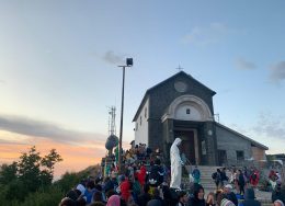 Tutti insieme è stato poi bello incontrarci al sagrato della chiesa parrocchiale di Moiano per condividere la cena, dove la Pastorale ha offerto la Pizza per tutti, per poi ripartire verso la montagna. Neanche un filo di vento, il caldo e l’aver sudato “sette camicie” è stato forte ma stando in gruppo tutto si supera. Nebbia e freschetto al Belvedere, poi l’arrivo festoso al Santuario di San Michele Arcangelo è stata una gioia e liberazione per tutti.