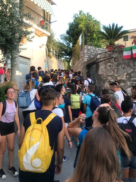Due gli appuntamenti per la partenza insieme: Vico centro ed area stabiese fuori il sagrato della chiesa parrocchiale dei Santi Ciro e Giovanni, raccogliendo per strada giovani delle Parrocchie di Bonea, Massaquano e San Salvatore. Circolare destra di Vico e Penisola Sorrentina l’appuntamento invece ad Arola. Per i più temerari la partenza è stata direttamente a piedi da Sant’Agata sui due Golfi e poi Sorrento.