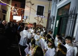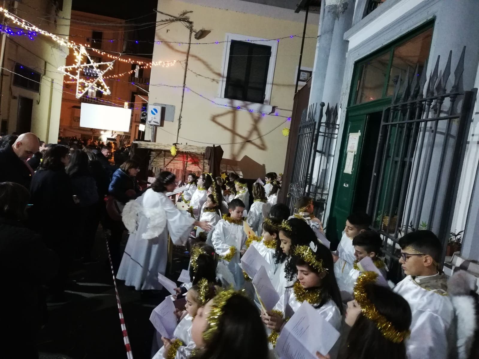 Quest’anno l’ambientazione si è spostata di qualche metro, perché hanno partecipato molti bambini provenienti dalla Concattedrale, e precisamente in Via Dogana Regia fino alla famosa Scala di Tatone, dove è stato possibile ricreare tutti gli ambienti del Presepe Napoletano dall’Annunciazione all’arrivo dei Re Magi. Tutto è stato accompagnato da un coro di magiche stelline e angioletti interpretati dai bambini più piccoli.