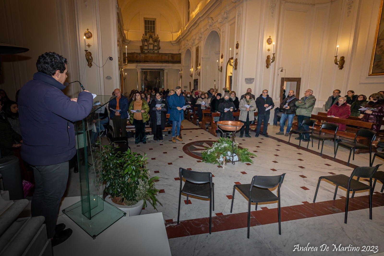 “Riscoprirci per quello che siamo, un unico popolo, unito nello stesso Padre” è stata l’esortazione che ha aperto la riflessione del nostro Arcivescovo Mons. Francesco Alfano. “La parola dei profeti è bella da ascoltare – continua don Franco – perché ci riporta alla verità, alla storia di ogni giorno, ma è scomoda. Noi questa sera la ascoltiamo come dono che scuote le coscienze […] ci fa andare oltre, ci spinge a guardare lontano a non perdere la speranza che è fondata su Gesù, che nasce dalla sua Pasqua di morte e resurrezione, la speranza che il dono dello spirito ci unisce nonostante le nostre miserie, il nostro camminare con lentezza e la fatica di accoglierci”.