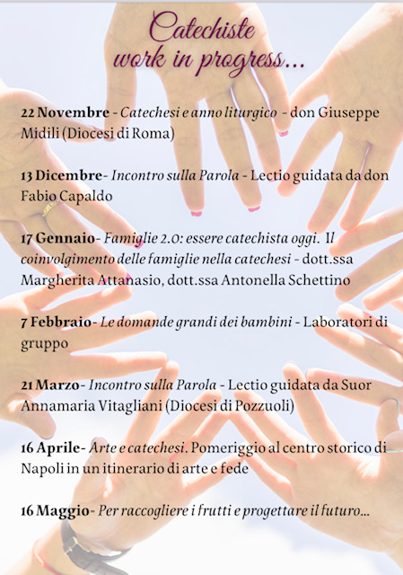 Questo cammino vuole essere un ascolto reciproco che arricchisce tutti, che può aiutare le parrocchie meno dotate, che può accompagnare le catechiste che, a volte, si sentono inadeguate a svolgere la missione loro affidata, che può far “rinascere” l’entusiasmo e la voglia di continuare in chi, forse, non sa più sognare.
