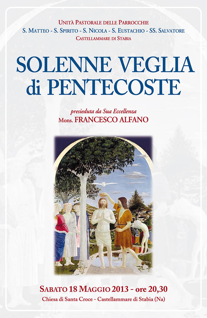 Sabato 18 maggio lUnità pastorale delle parrocchie di San Matteo, Santo Spirito, San Nicola, SantEustachio, Santissimo Salvatore di Castellammare di Stabia organizzano una veglia di preghiera, alla vigilia della Pentecoste, che questanno si celebra domenica 19 maggio.