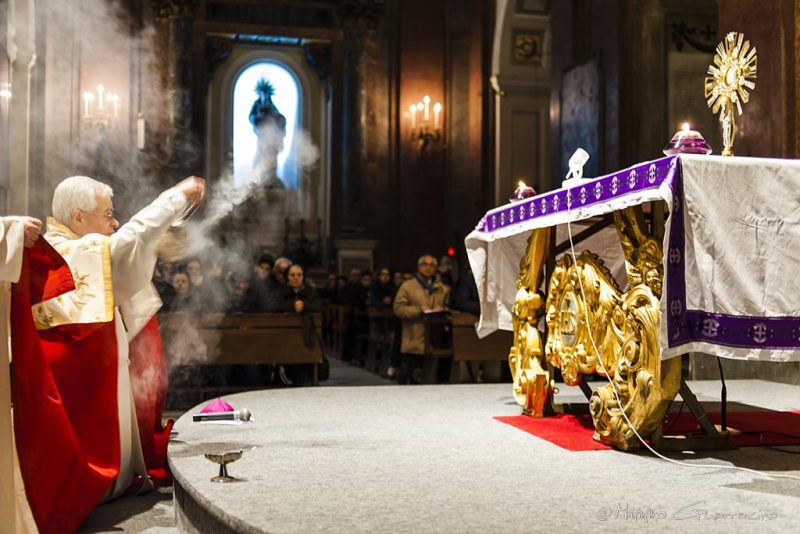 In realtà, ha spiegato il nostro Pastore, la parola di Dio si deve sposare con limpegno del suo popolo, che non può cedere al compromesso e non può aspettare tutto dallAlto. Come al tempo di Isaia, Dio parla al cuore del suo popolo e della Chiesa chiedendo di rivedere i nostri comportamenti. Non ci possiamo accontentare di apparenze superficiali o di compromessi. Questi, ha ribadito monsignor Alfano, sono giorni nei quali fare un grande esame di coscienza, come ci ha insegnato proprio Papa Benedetto. È tempo, dunque, di andare a fondo nella nostra fede, specialmente in questAnno della Fede, voluto dal Pontefice emerito. Il gesto alto e sconvolgente di Benedetto XVI di lasciare il ministero petrino ci deve lasciare in una santa inquietudine. Il Signore ci guiderà sempre se sapremo accogliere, donare, riconoscere in ogni persona il nostro fratello, lottare per la giustizia e la pace, superare ogni divisione, stare accanto agli ultimi. No, non si scende dalla Croce: la Chiesa sia testimone di un annuncio di vita e risurrezione, restando accanto ad ogni crocifisso della terra. Questa è la missione della Chiesa ed è quello che chiediamo al Signore per il nostro nuovo Papa: che sappia essere promotore di unità e al tempo stesso valorizzare le Chiese locali, intensificare il dialogo con le altre confessioni cristiane e con le altre religioni per un mondo in cui regni larmonia, la pace e la giustizia, insomma che sia un Pastore secondo il cuore di Dio. Dona, Signore, a questa tua Chiesa ha aggiunto monsignor Alfano – di vivere in comunione con Te e con i fratelli e di fare del Vangelo la legge della nostra vita. Donaci il tuo Santo Spirito e donalo ai cardinali riuniti per il prossimo