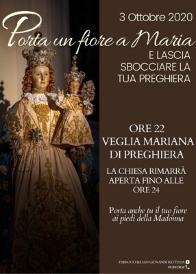๐—ฆ๐—ฎ๐—ฏ๐—ฎ๐˜๐—ผ ๐Ÿฏ ๐—ผ๐˜๐˜๐—ผ๐—ฏ๐—ฟ๐—ฒ la Parrocchia di san Giovanni Battista โ€“ Arciconfraternita del SS. Rosario del Trivione di Gragnano organizza โ€œ๐‘ƒ๐‘œ๐‘Ÿ๐‘ก๐‘Ž ๐‘ข๐‘› ๐‘“๐‘–๐‘œ๐‘Ÿ๐‘’ ๐‘Ž ๐‘€๐‘Ž๐‘Ÿ๐‘–๐‘Žโ€ฆ๐‘’ ๐‘™๐‘Ž๐‘ ๐‘๐‘–๐‘Ž ๐‘ ๐‘๐‘œ๐‘๐‘๐‘–๐‘Ž๐‘Ÿ๐‘’ ๐‘™๐‘’ ๐‘ก๐‘ข๐‘Ž ๐‘๐‘Ÿ๐‘’๐‘”โ„Ž๐‘–๐‘’๐‘Ÿ๐‘Žโ€, una ๐˜ƒ๐—ฒ๐—ด๐—น๐—ถ๐—ฎ ๐—บ๐—ฎ๐—ฟ๐—ถ๐—ฎ๐—ป๐—ฎ in occasione dei festeggiamenti in onore della Beata Vergine del Rosario. ๐—Ÿ๐—ฎ ๐—ฐ๐—ต๐—ถ๐—ฒ๐˜€๐—ฎ ๐—ฟ๐—ถ๐—บ๐—ฎ๐—ฟ๐—ฟ๐—ฎฬ€ ๐—ฎ๐—ฝ๐—ฒ๐—ฟ๐˜๐—ฎ ๐—ณ๐—ถ๐—ป๐—ผ ๐—ฎ๐—น๐—น๐—ฒ ๐—ผ๐—ฟ๐—ฒ ๐Ÿฎ๐Ÿฐ, ciascuno รจ inviato a portare un fiore che potrร  deporre ai piedi della Madonna.