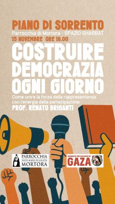 Il prof. della Federico II Renato Briganti, in collaborazione con Mani Tese Vico Equense, grazie alle porte sempre aperte di Don Rito Maresca e con il supporto di Sorrento for children of Gaza, vi aspetta allo Shabbat a Mortora (Piano di Sorrento, accanto alla chiesa omonima).