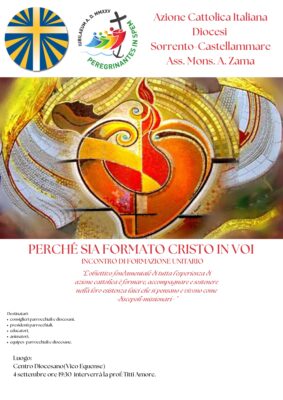 Raccogliendo la spinta degli Orientamenti per il triennio 2024-2027, che sollecita alla cura della formazione come elemento di crescita personale e associativa per un’ acquisizione sempre maggiore e sempre più piena di una responsabilità calata nei meandri della vita, l’ azione cattolica diocesana propone il seguente incontro che ci impegna unitariamente ad una partecipazione attiva e motivata. Vi aspettiamo ” a braccia aperte” …