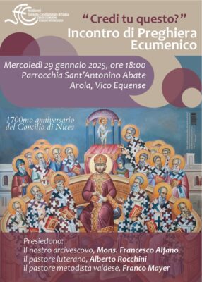 Il 2025 segna il 1700° anniversario del Primo Concilio Ecumenico di Nicea (325). Questa commemorazione offre un’occasione unica per riflettere e celebrare la fede comune dei cristiani, così come è stata espressa nel Credo formulato in quel Concilio. La Settimana di preghiera per l’unità dei cristiani 2025 è un invito ad attingere a tale eredità comune e ad approfondire la fede che unisce tutti i cristiani.