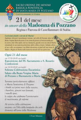 “Carissimi fedeli e devoti di Maria,vogliamo ritrovarci mensilmente insieme, sul colle di Pozzano, dove la Beata Vergine Maria ha posto il suo trono di grazia e di misericordia per la nostra città! Ella infatti, dal suo Santuario, guarda verso la città di Stabia estendendo la sua materna protezione dalle colline al mare. Saliamo allora al suo colle, accostiamoci con filiale devozione ai piedi del suo trono di Madre e Regina di Stabia nella memoria mensile del suo patrocinio”