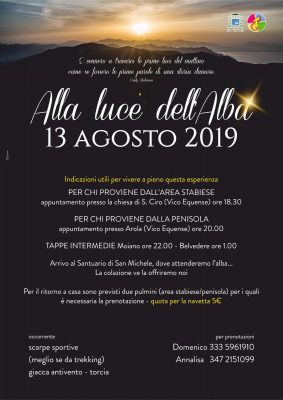30 Luglio 2019Alla Luce dell’Alba martedì 13 Agosto Descrizione: a cura della Pastorale Giovanile Inizio: 13/08/2019 18:30 Fine: 13/08/2019 23:59 Categorie: Appuntamenti diocesani Indirizzo: Monte Faito Città: Sorrento Regione: Campania Paese: Italia Alla Luce dell'AlbaMonte Faito